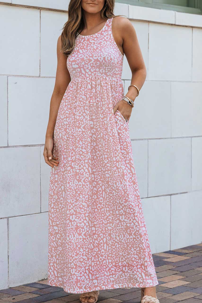 Λέοπαρ maxi φόρεμα σε ουδέτερη trendy ροζ απόχρωση με τσέπες στα πλάγια. Casual, εντυπωσιακό και άνετο για τις ζεστές καλοκαιρινές μέρες.