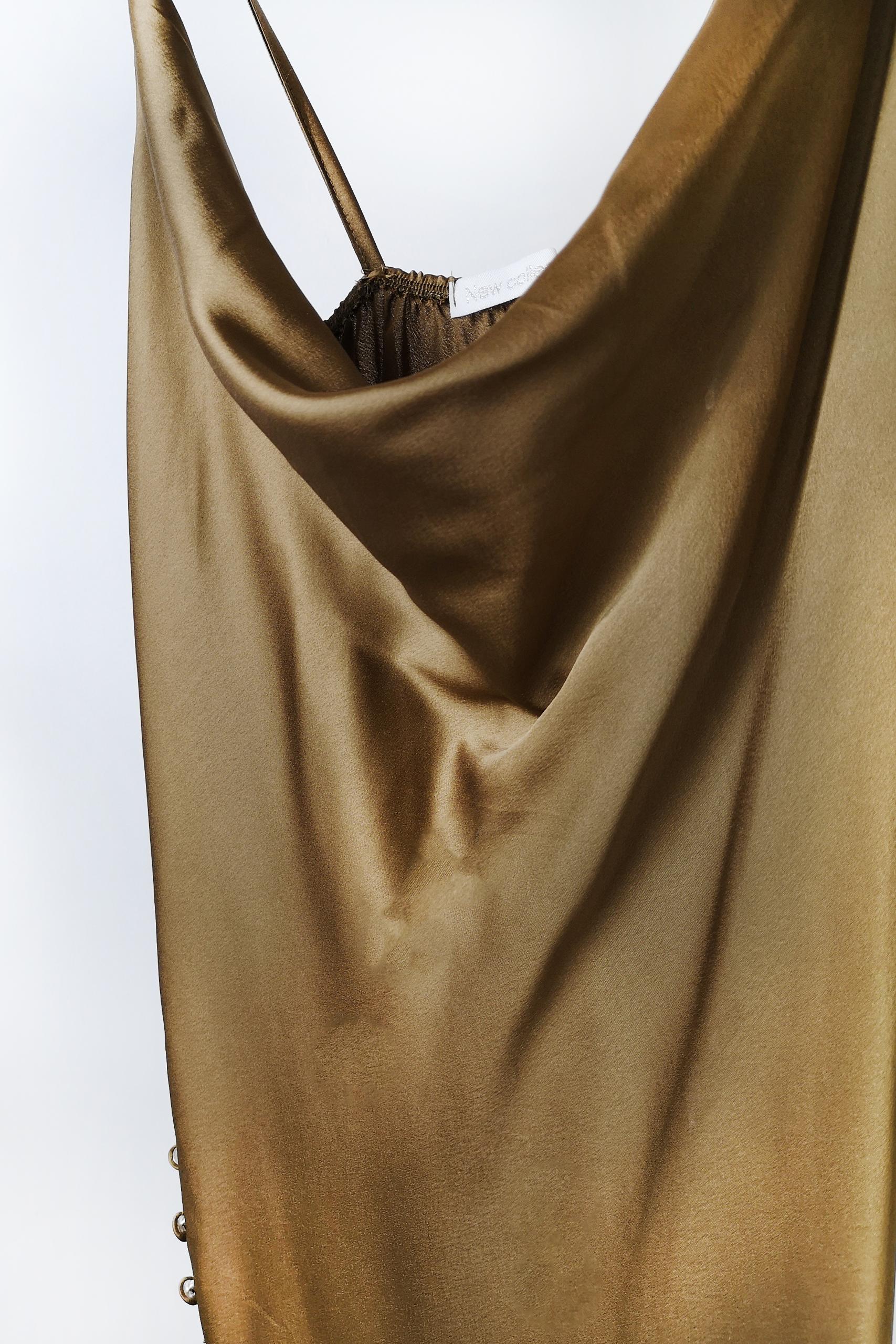 • Midi ντραπέ φόρεμα με spaghetti straps | Χαμηλή τετράγωνη πλάτη