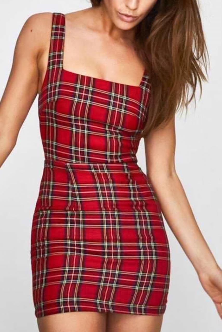 Tartan κόκκινο μίνι φόρεμα