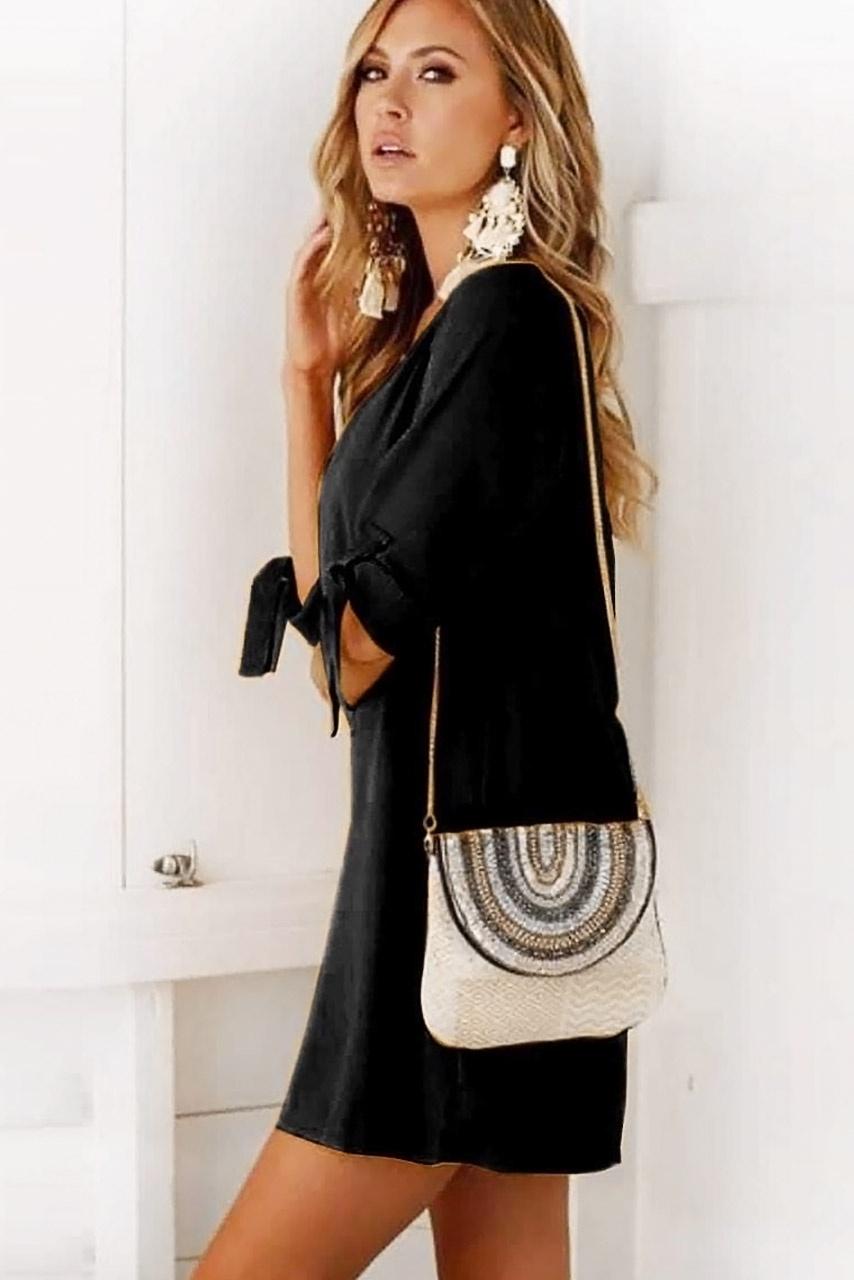 Μίνι καθημερινό φόρεμα με στρογγυλή λαιμόκοψη και μαζεμένα τύπου μανίκια με δέσιμο. Σε ίσια γραμμή και σε δύο υπέροχα χρώματα για να διαλέξεις το αγαπημένο σου. Ένα must have κομμάτι που δεν πρέπει να λείπει από την συλλογή σου.