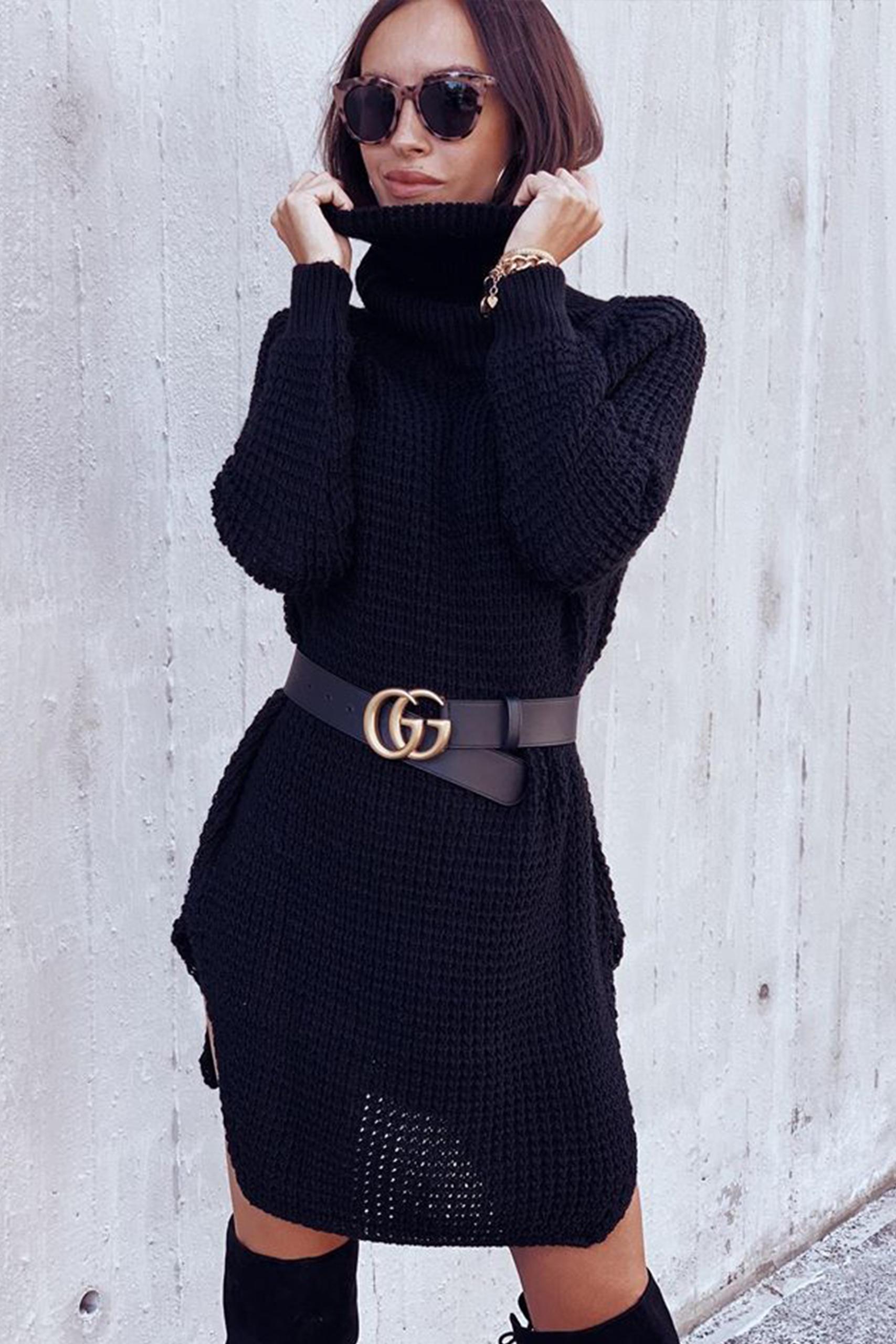 • Μπλουζοφόρεμα πλεκτό | Μακρυμάνικο | Turtleneck | Ανοίγματα στο πλάι