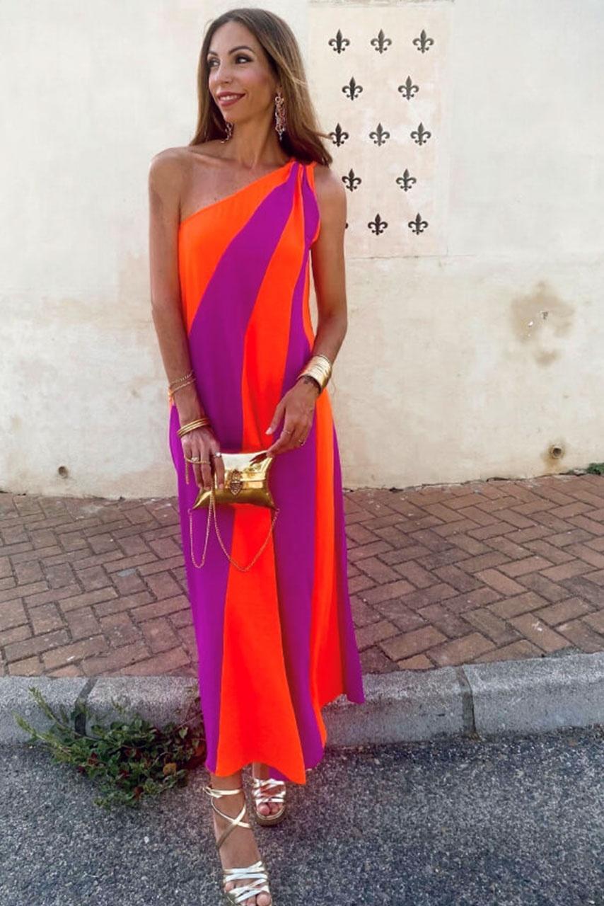 Two colors mix μακρύ φόρεμα με ασύμμετρο ντεκολτέ. Διατίθεται σε onesize και καλύπτει έως medium.
