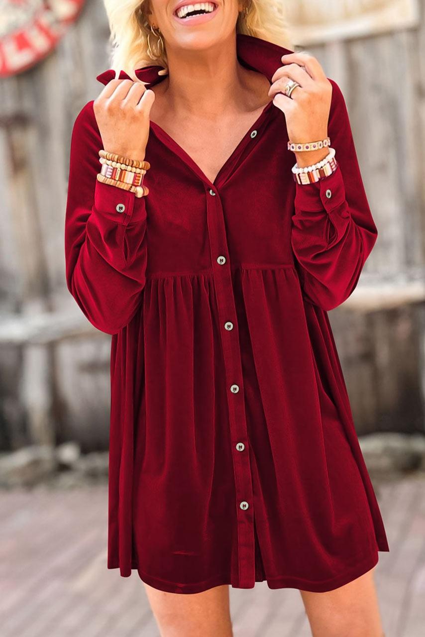 Φόρεμα βελουτέ μακρυμάνικο με κουμπιά σε μπορντό