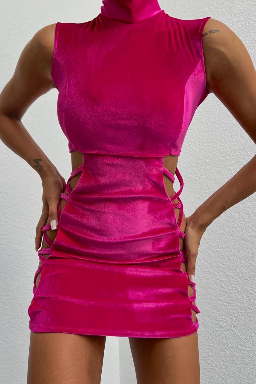 Βελουτέ super mini φόρεμα σε φούξια