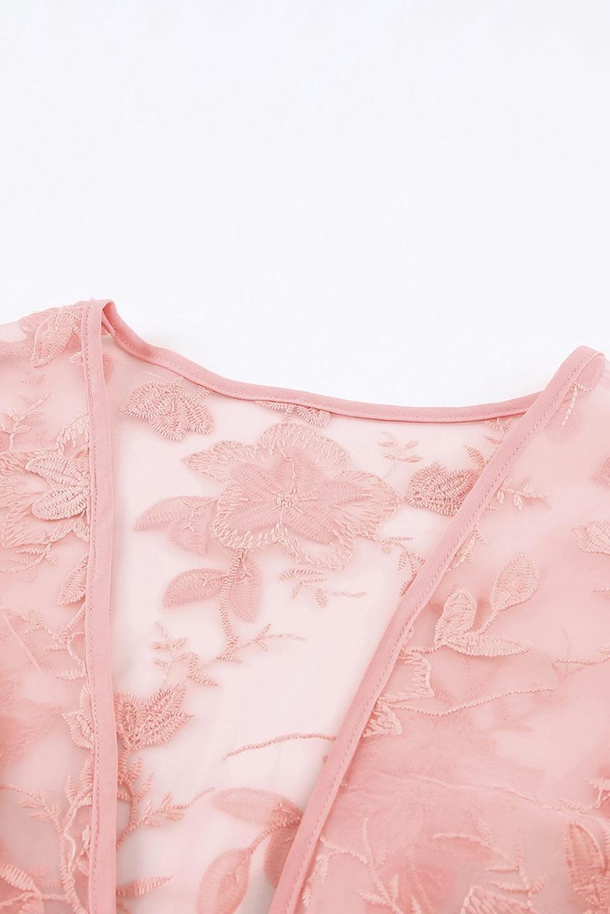 Elegant mesh κιμονό με δαντέλα σε ροζ
