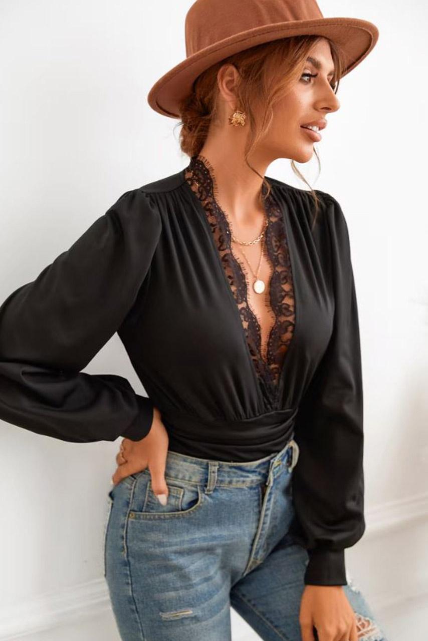 Ένα κλασικό μαύρο κορμάκι δεν πρέπει να λείπει ποτέ από τη ντουλάπα μας. Ρομαντικό με λεπτομέρειες δαντέλας για να το φορέσεις από το πρωί ως το βράδυ.
