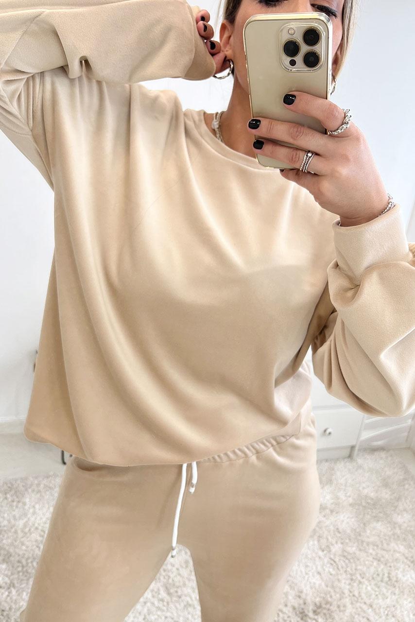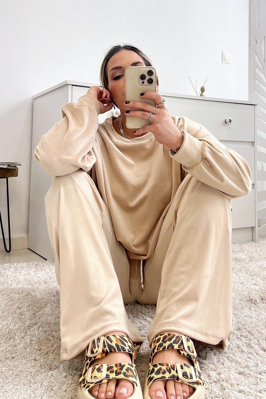 Velvet casual all day cozy σετ φόρμας σε μπεζ απόχρωση.