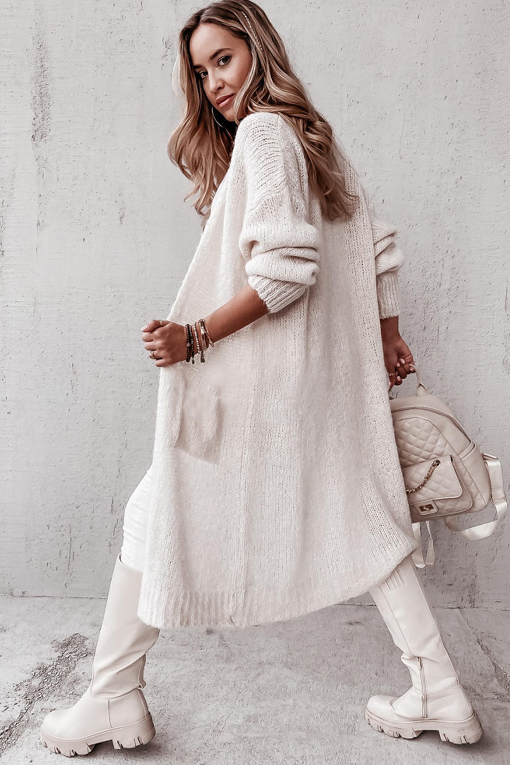 Λευκή longline μακρυά ζακέτα σε loose γραμμή με μεγάλες τσέπες.