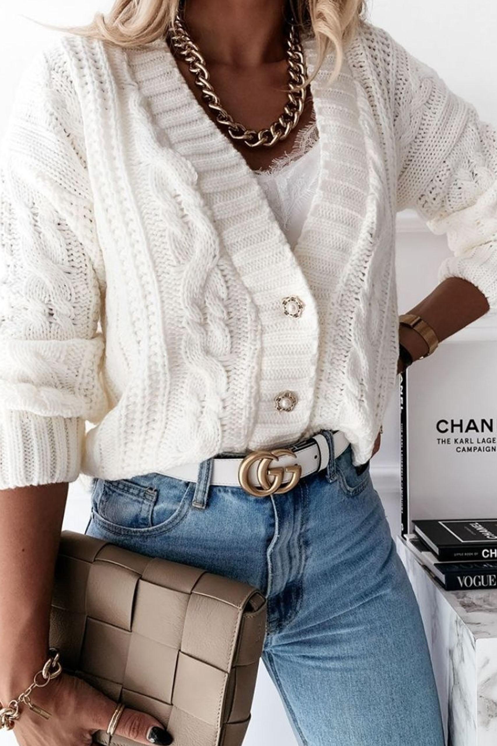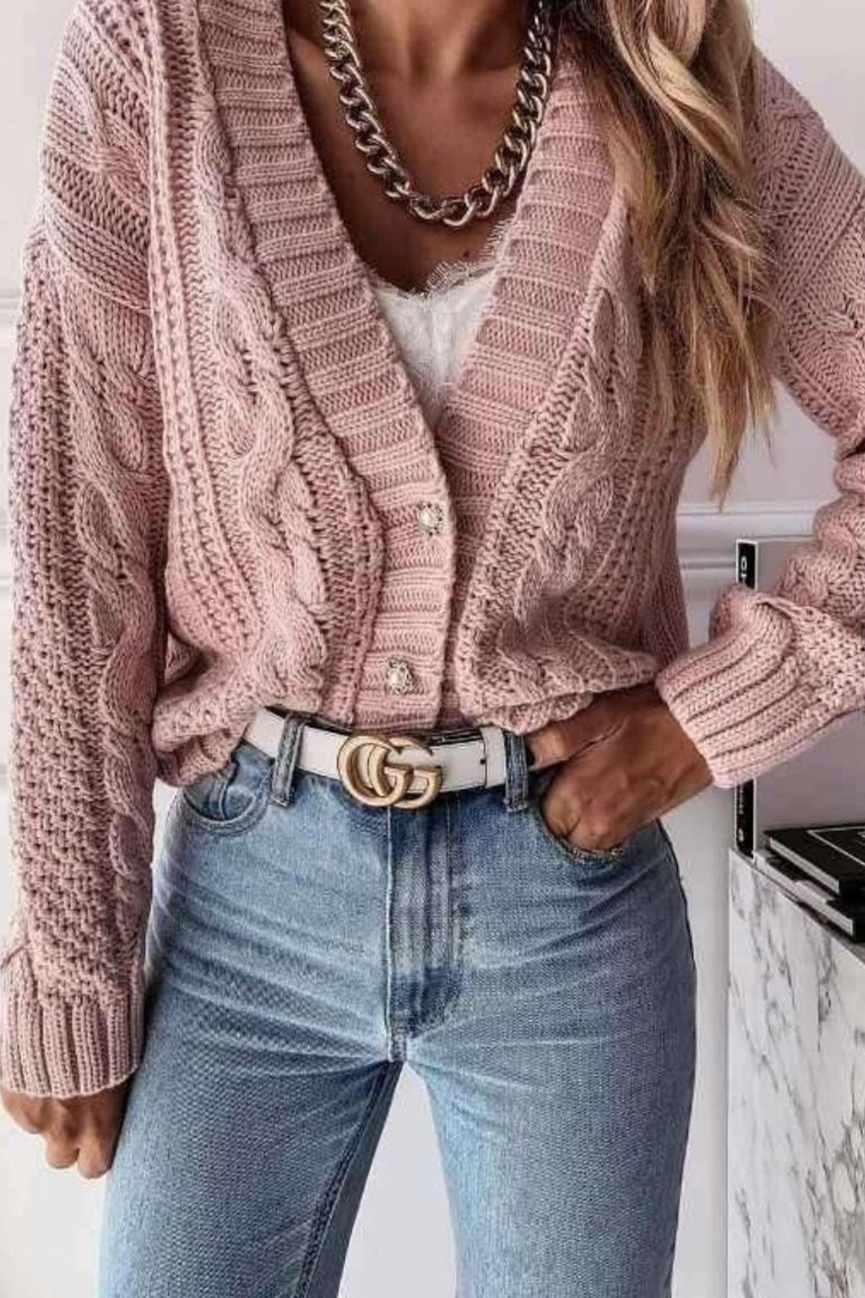 V neck braided ζακέτα σε τέσσερις αποχρώσεις με ρετρό κουμπιά.