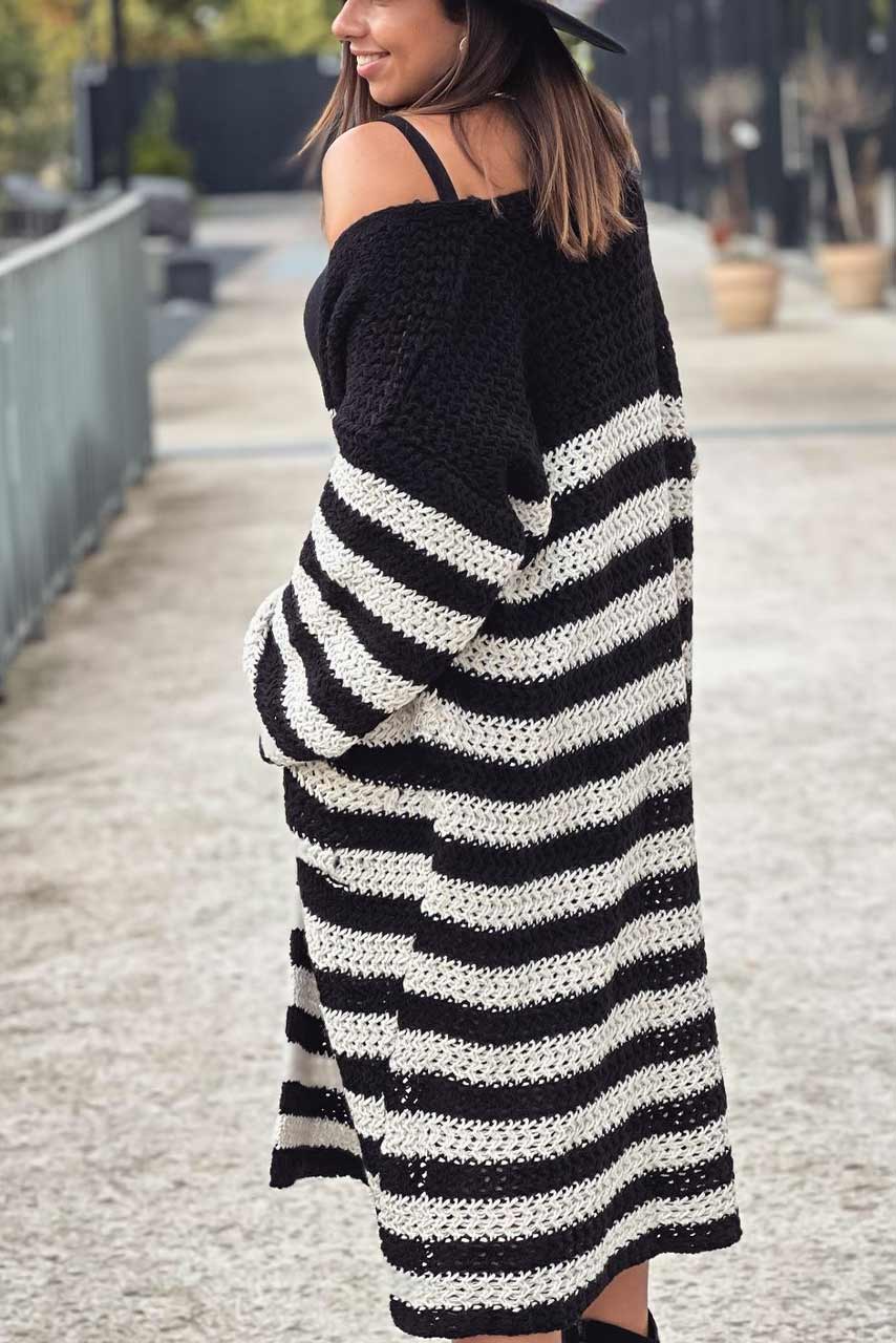 Navy style ζακέτα μακριά με μεγάλες ρίγες σε ασπρόμαυρη απόχρωση. Μια must have ζακέτα που θα την συνδυάσεις με όλα τα ρούχα σου.