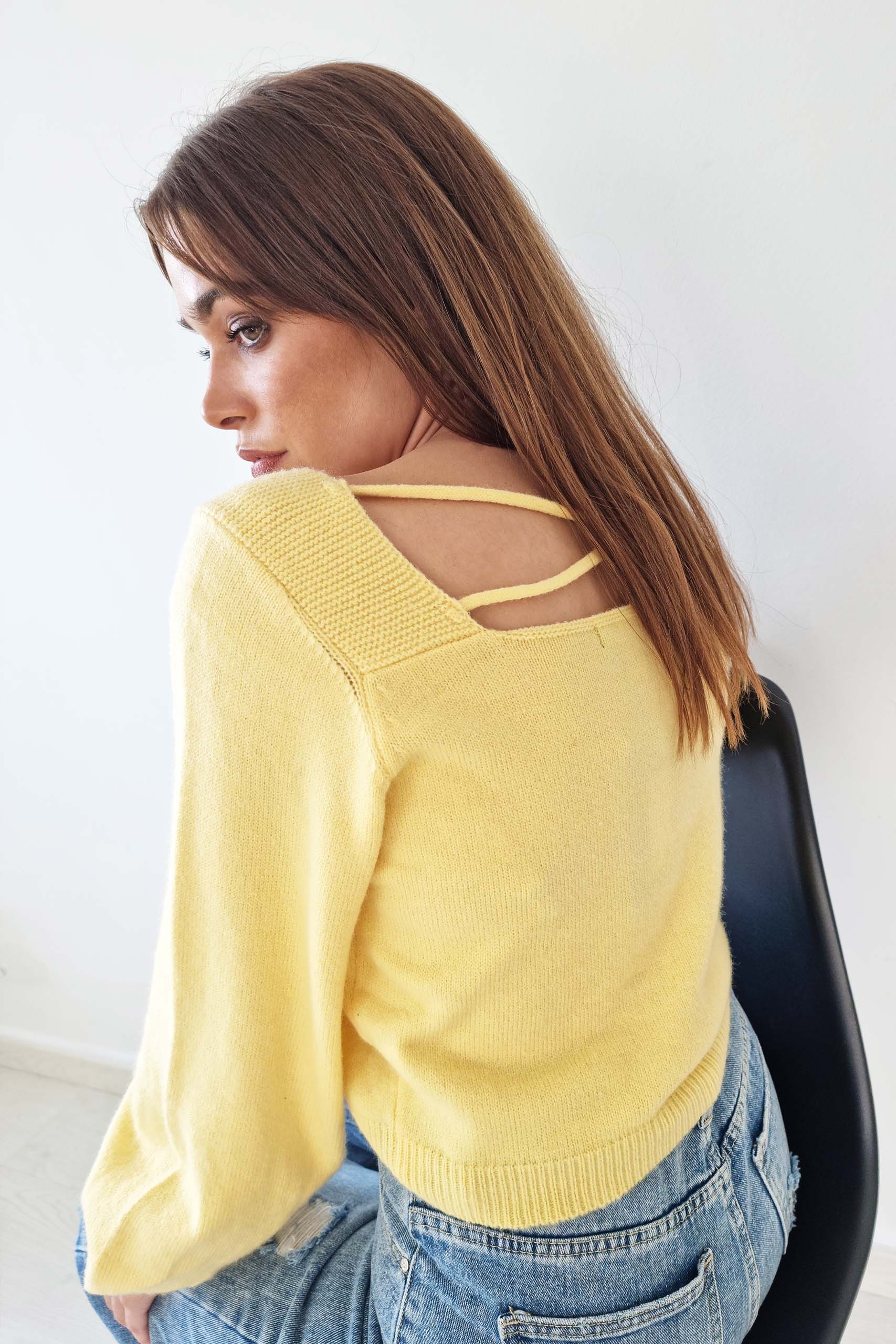 All day casual romantic μακρυμάνικη ζακέτα με cut outs στην πλάτη και balloon μανίκια.