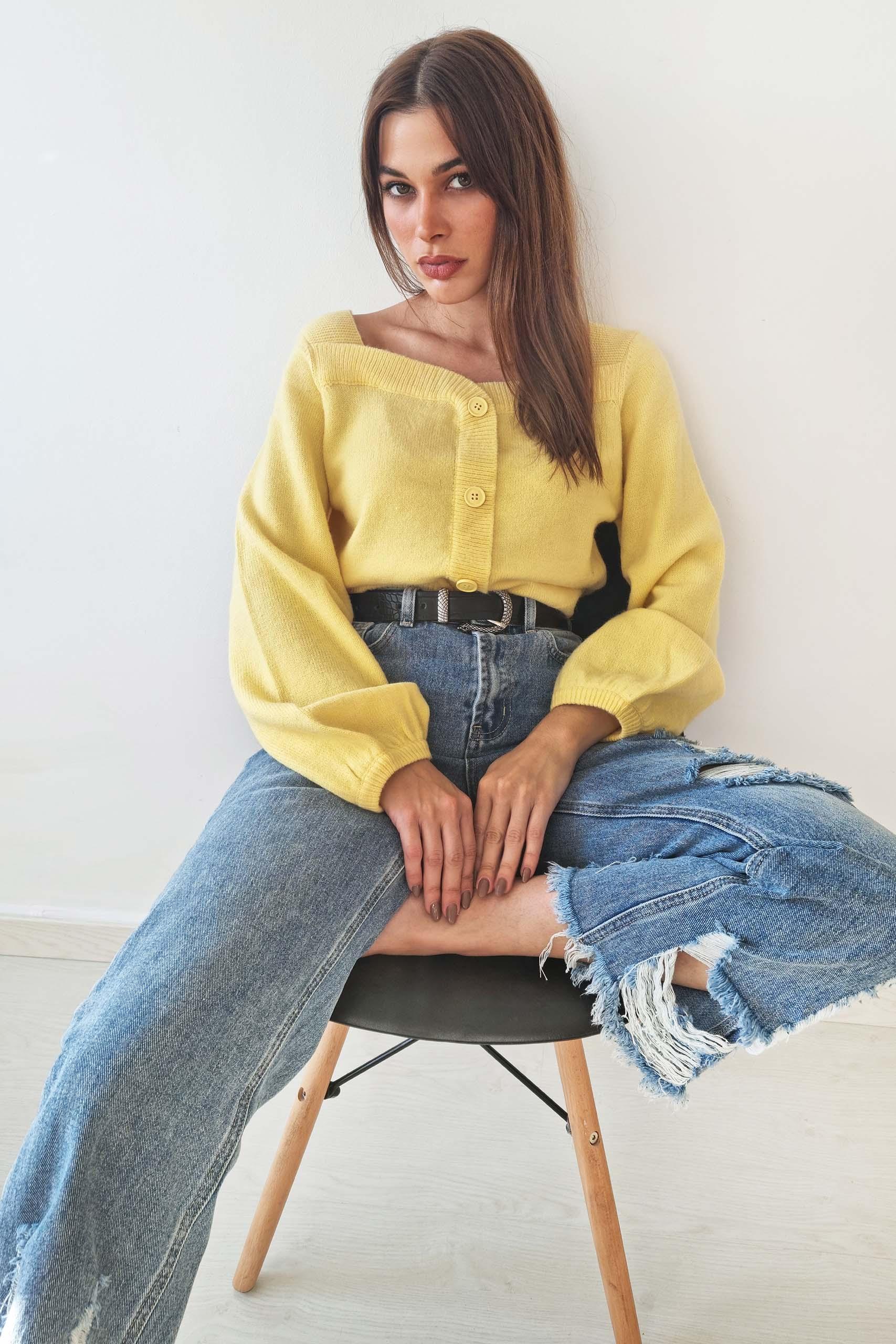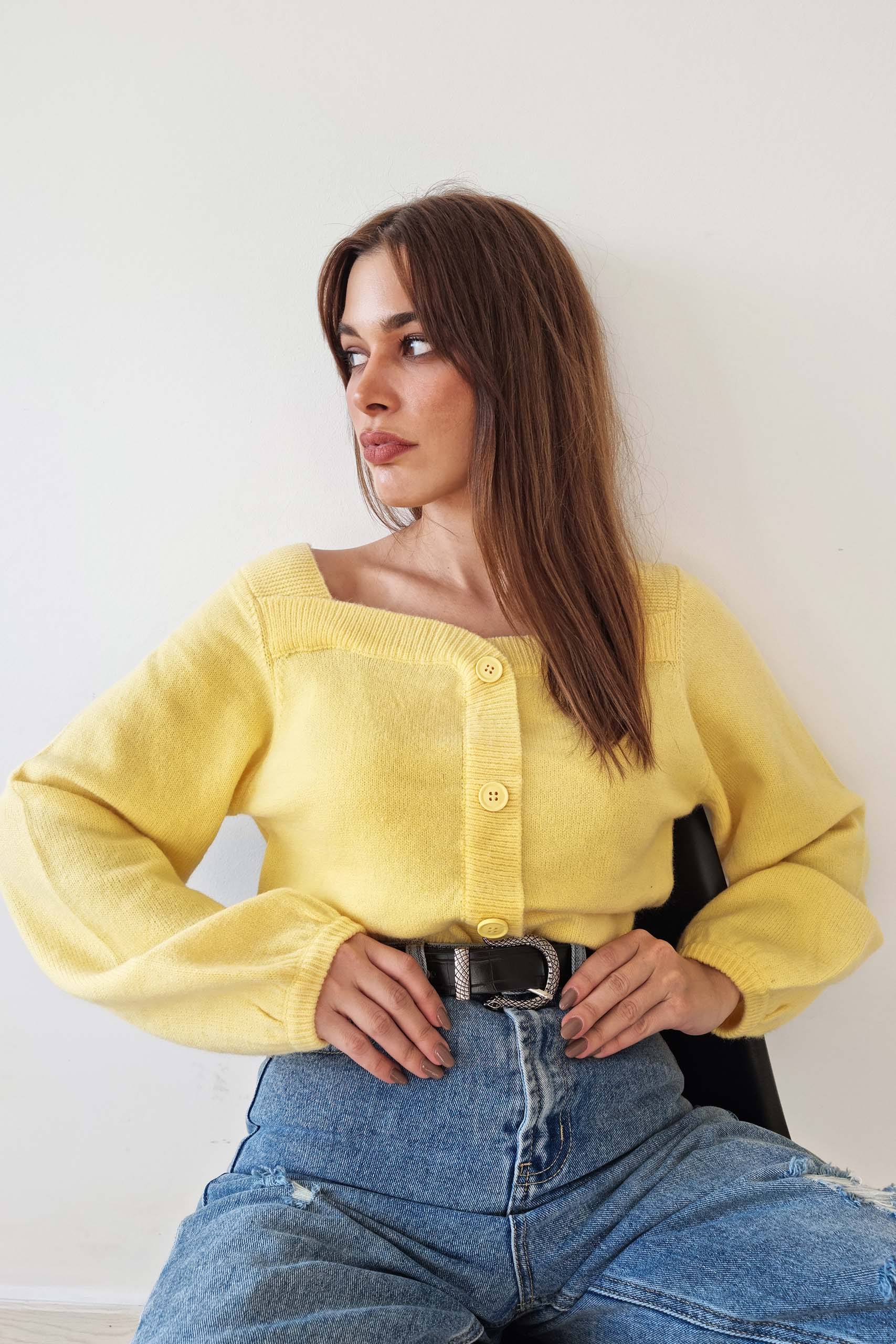 • Μακρυμάνικη ζακέτα πουλόβερ με κουμπιά | Balloon μανίκια