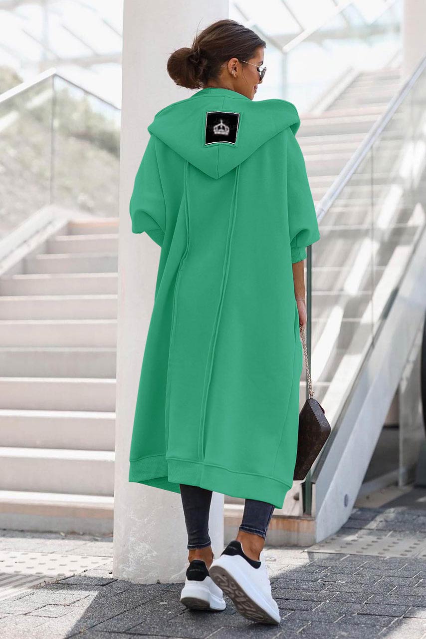 Μακριά oversize φούτερ ζακέτα με κουκούλα. Θα ολοκληρώσει απόλυτα το στυλ σου συνδυάζοντας την τέλεια με τζιν, δερμάτινο παντελόνι, κολάν ακόμη και με μίνι φούστα και ψηλές μπότες.