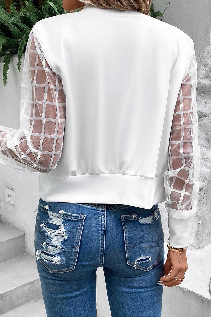 Κομψό bomber jacket με κλασικό κλείσιμο με φερμουάρ μπροστά και sheer διάφανα μανίκια.