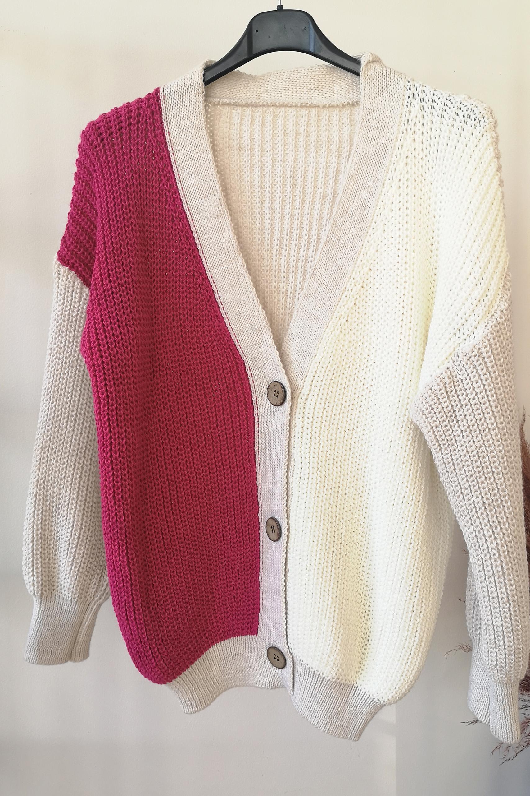 V neck δίχρωμη vintage cut ζακέτα με κουμπιά κατά μήκος σε δύο έντονες αποχρώσεις.