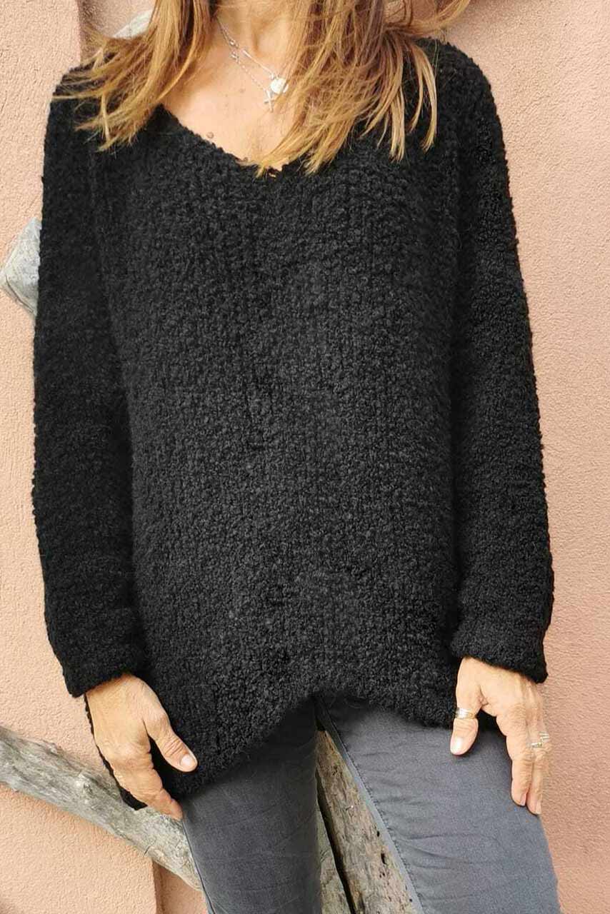 Υπέροχη γυναικεία loose fit μπουκλέ μπλούζα με deep V neck που αναδεικνύει την μοναδικότητα σου με στυλ.