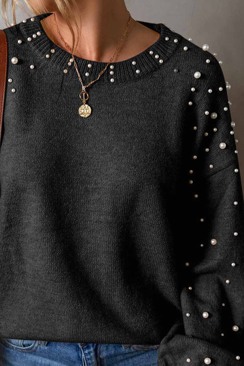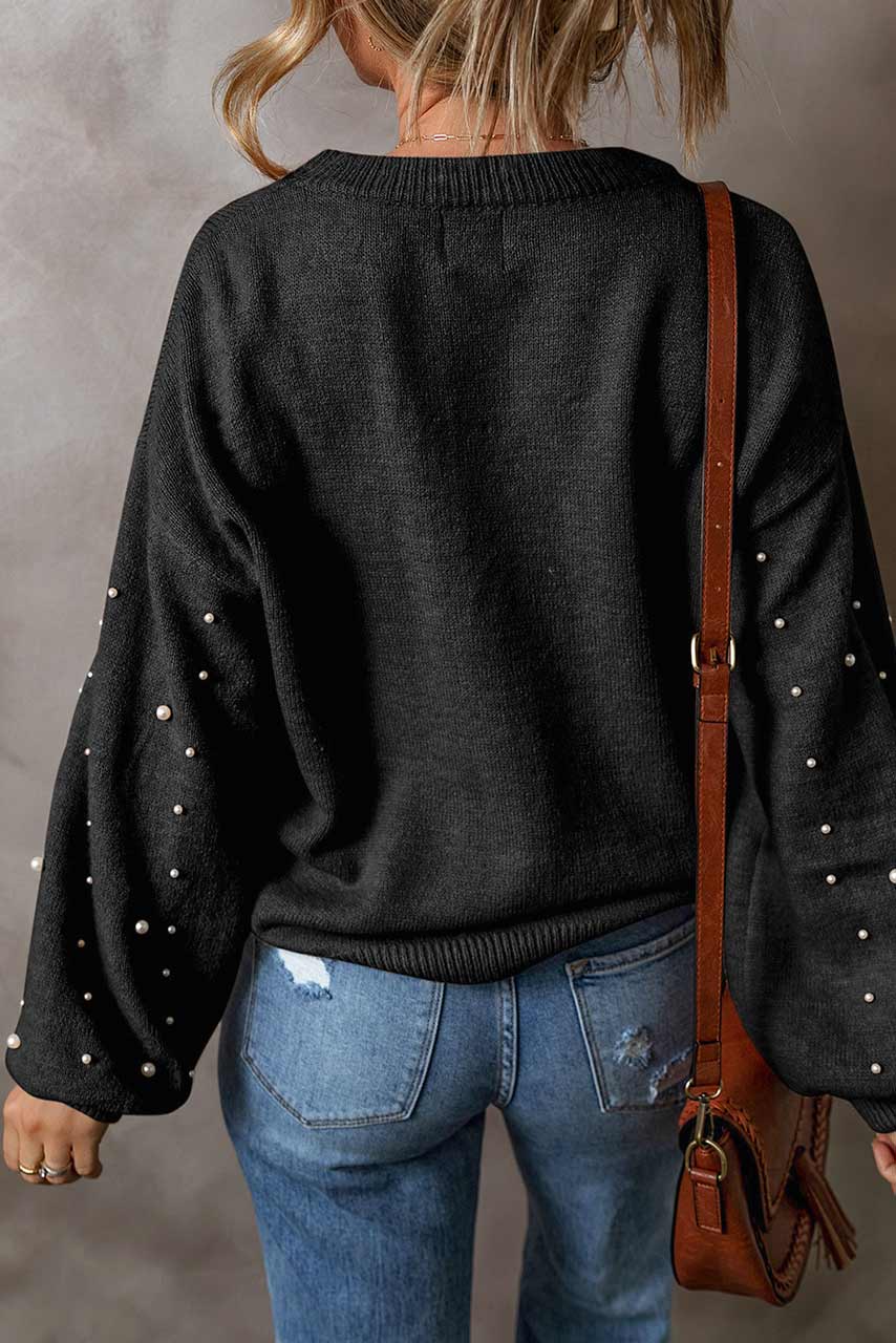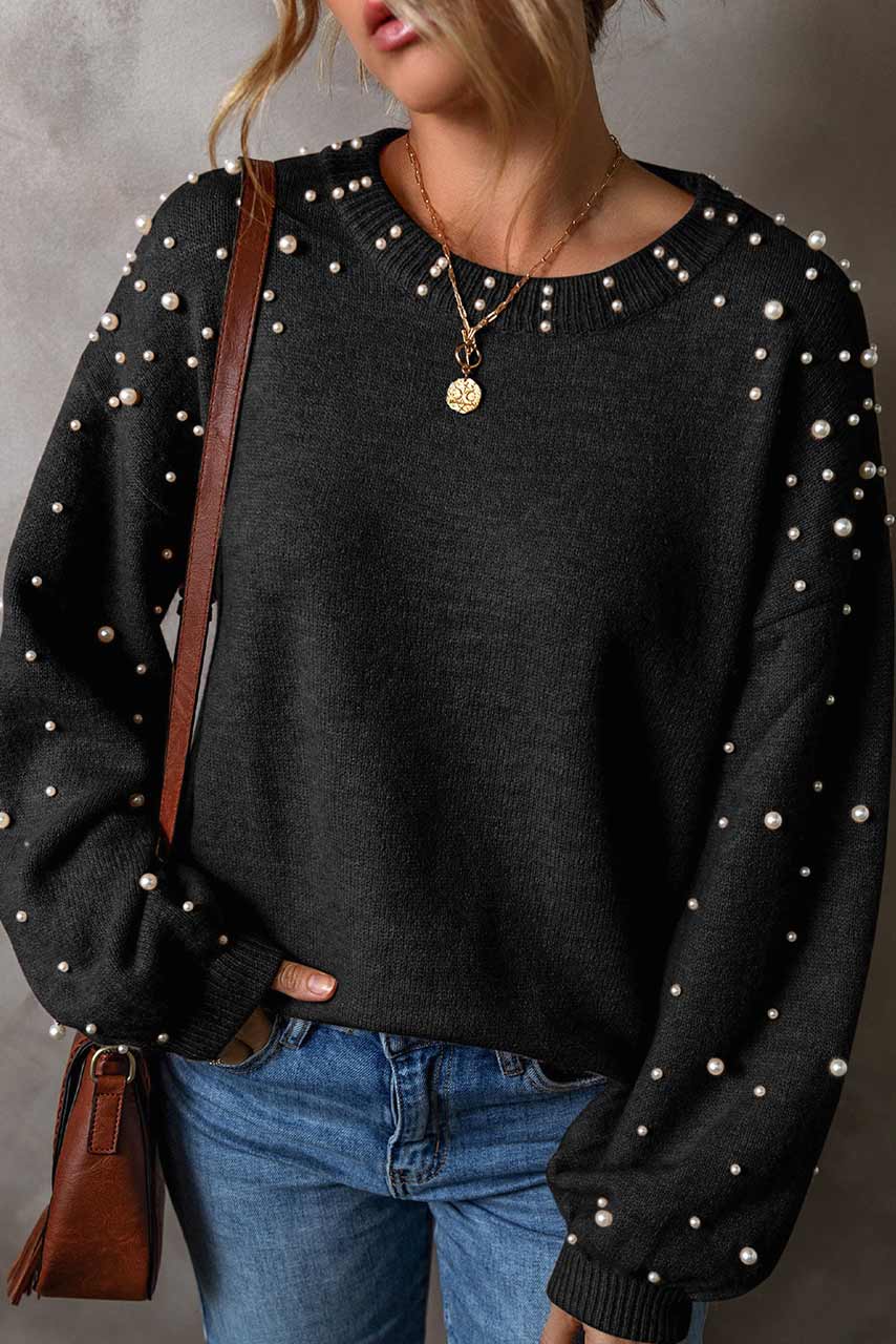 Μαύρο πουλόβερ με πέρλες