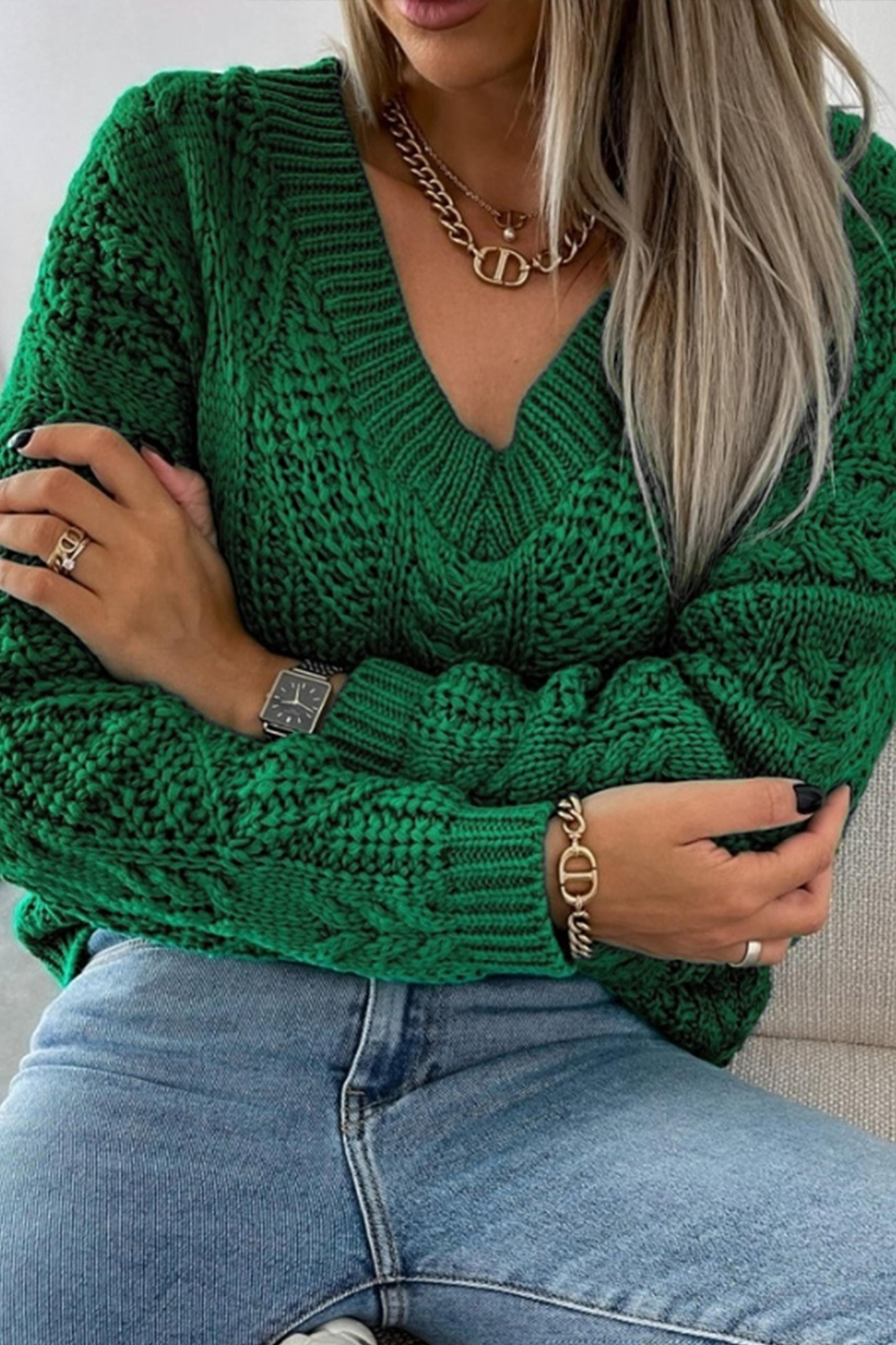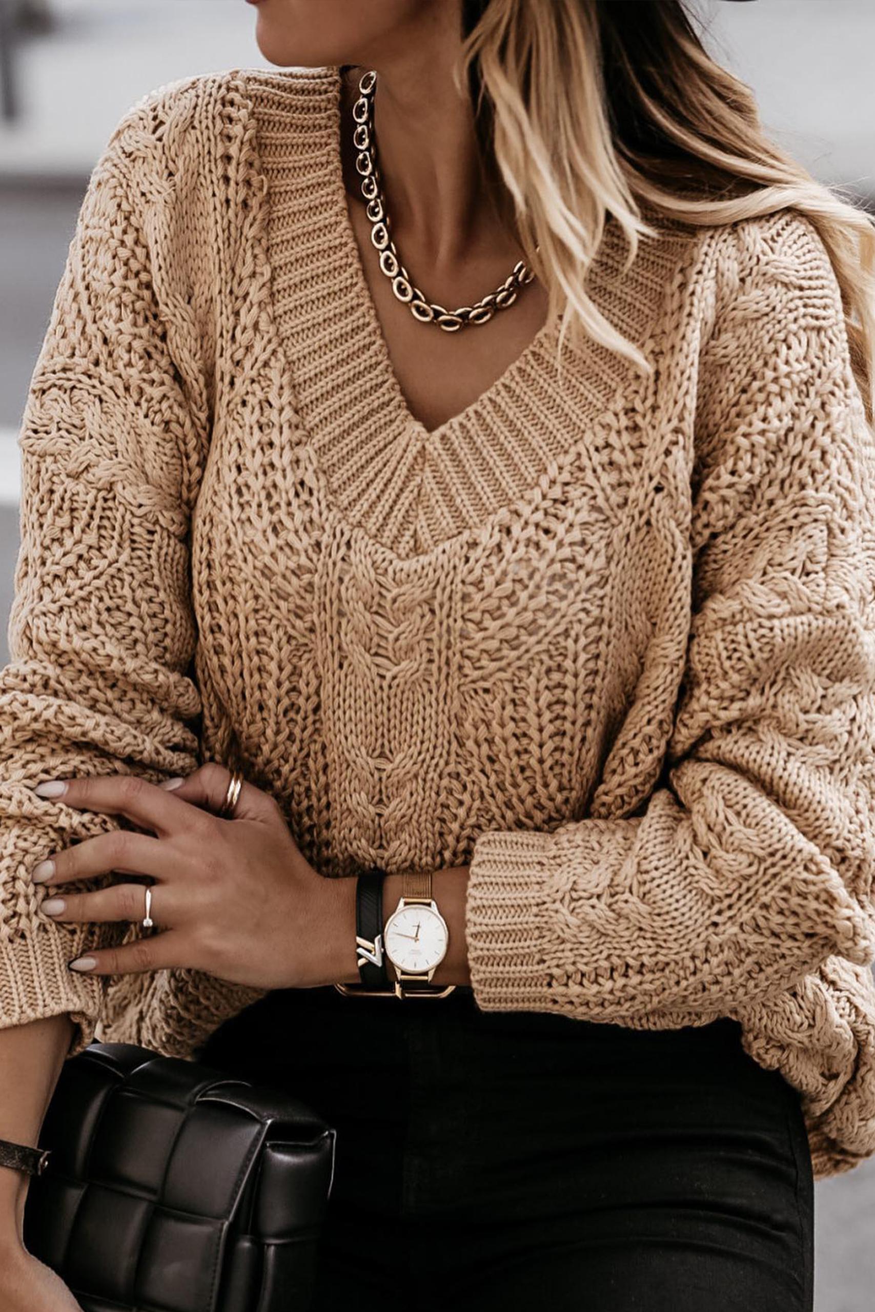 V neck braided πουλόβερ με χοντρή πλέξη σε τρεις αποχρώσεις.