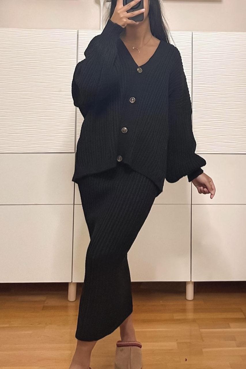 • Σετ πλεκτό | Ζακέτα με κουμπάκια | Φούστα με λάστιχο στη μέση