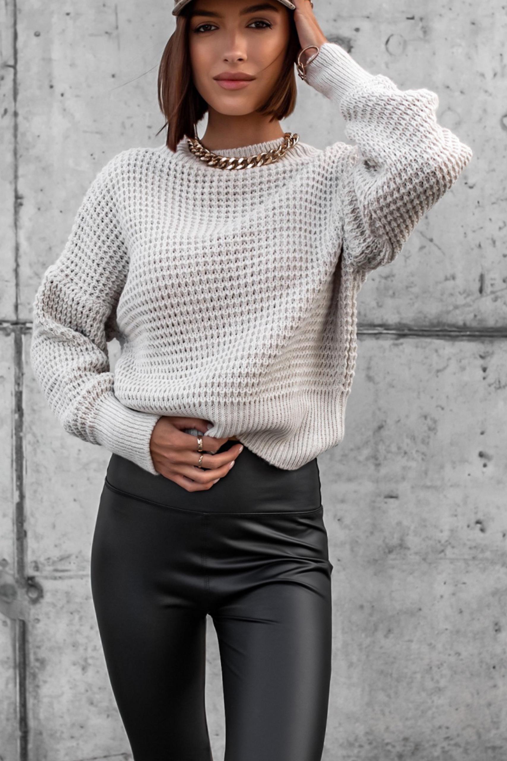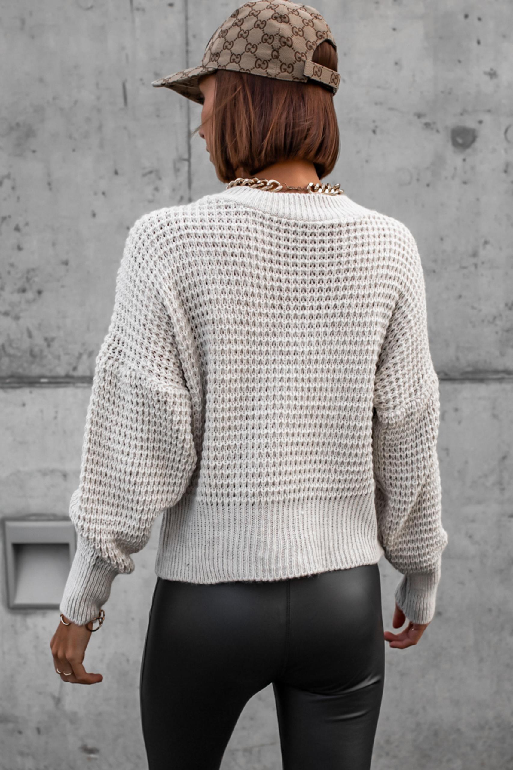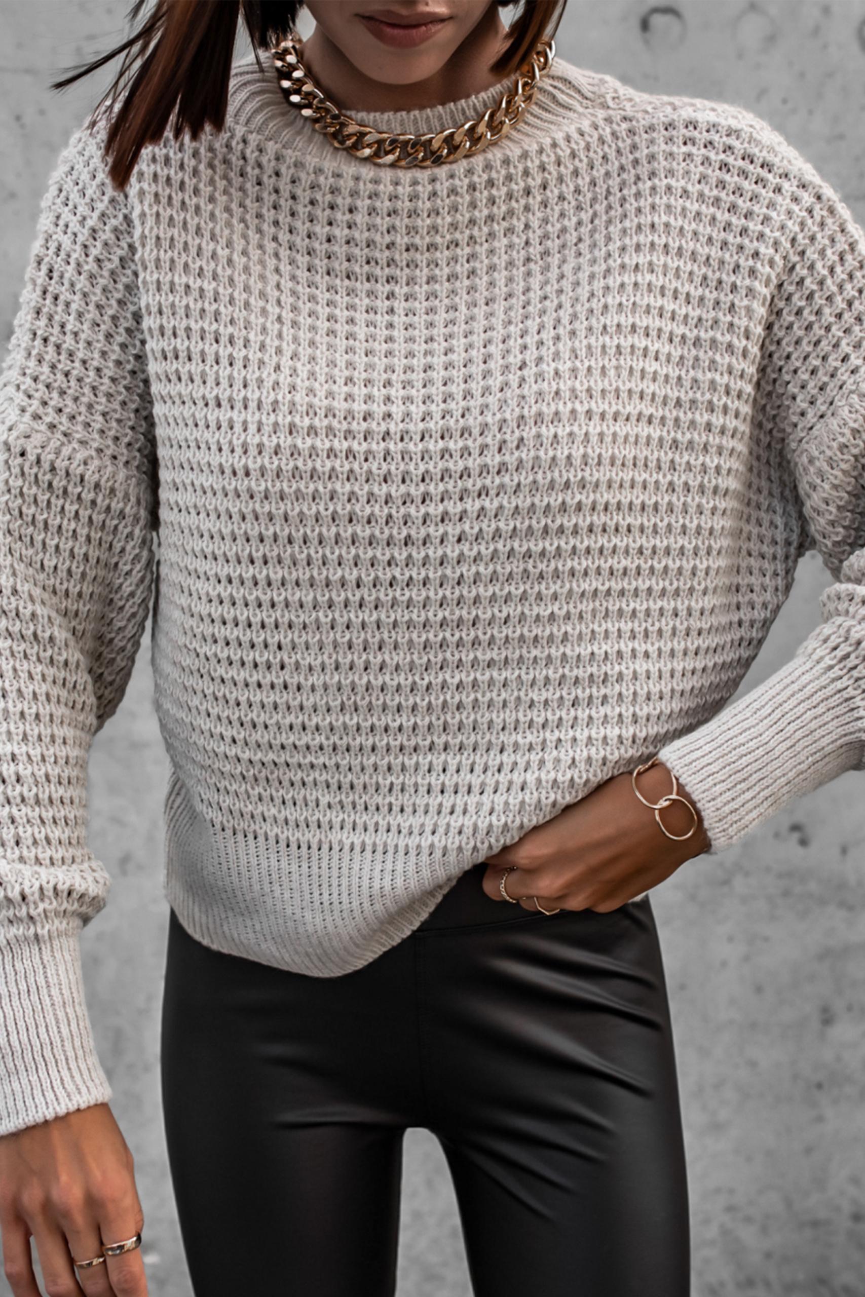 Knitted longsleeve O neck sweater μακρυμάνικο πουλόβερ με ανοιχτή πλέξη σε δύο αποχρώσεις.