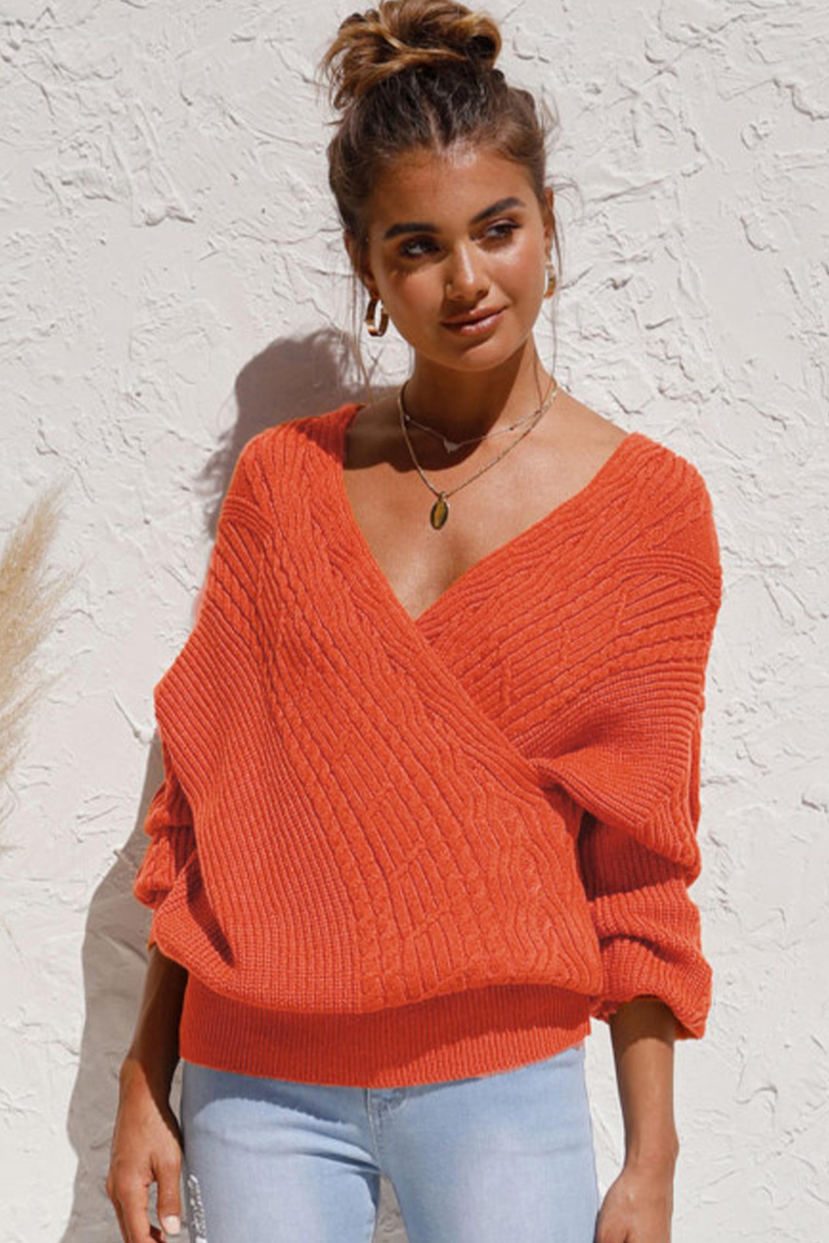 Knitted V neck πουλόβερ πορτοκαλί
