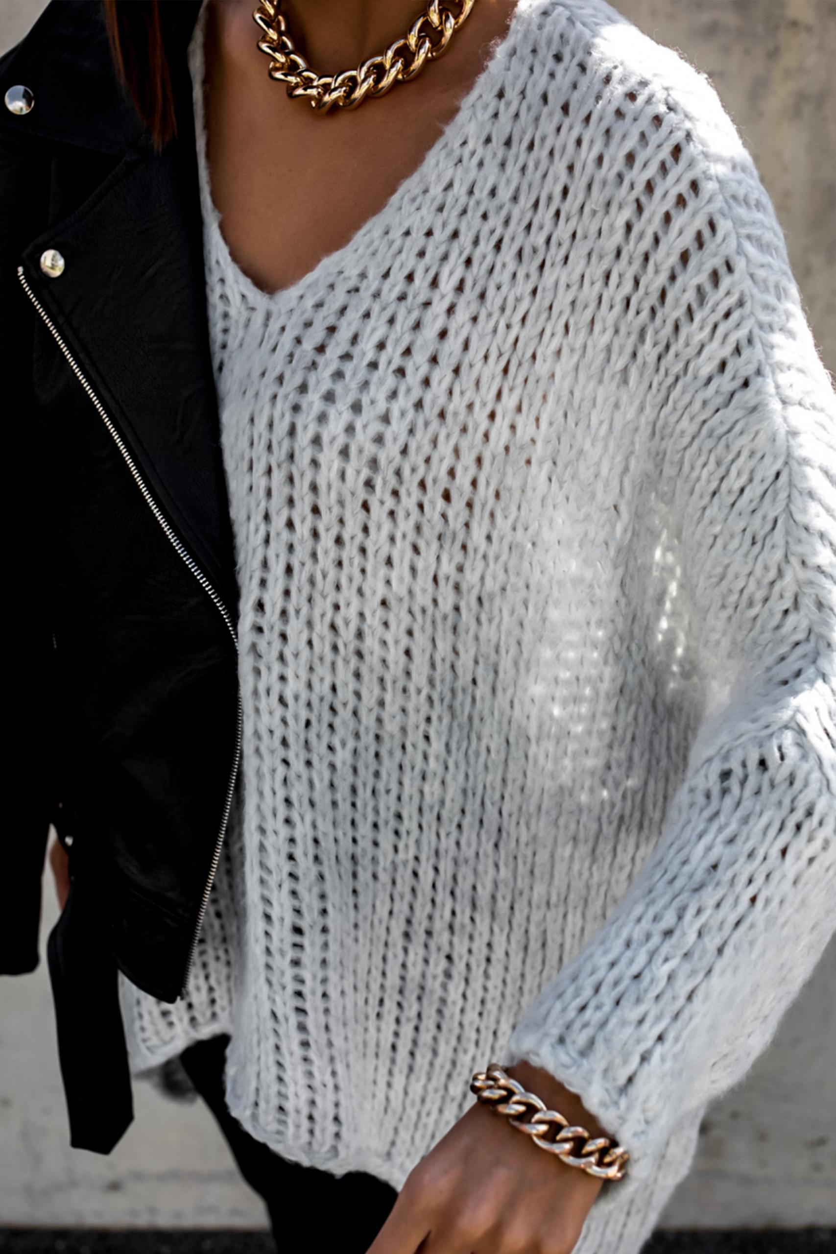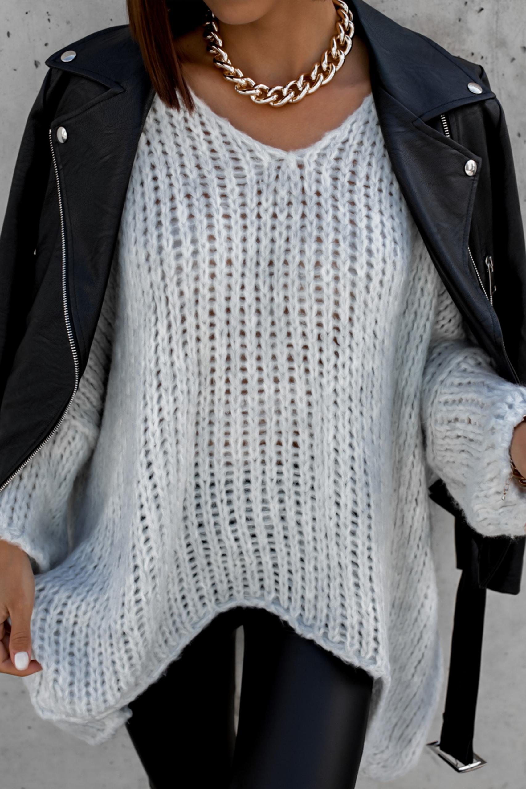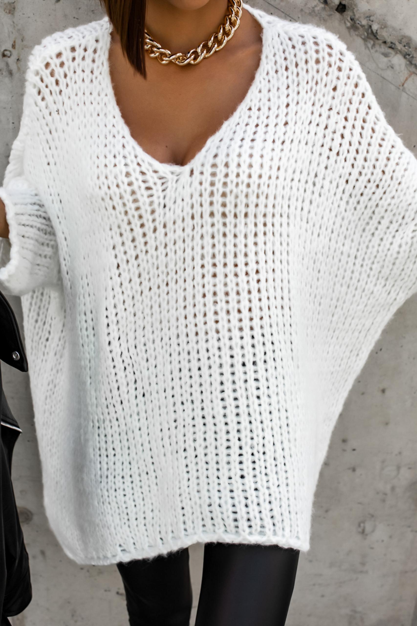 Oversized boho ασύμμετρο V neck πουλόβερ σε γκάμα αποχρώσεων  με ανοιχτή πλέξη.