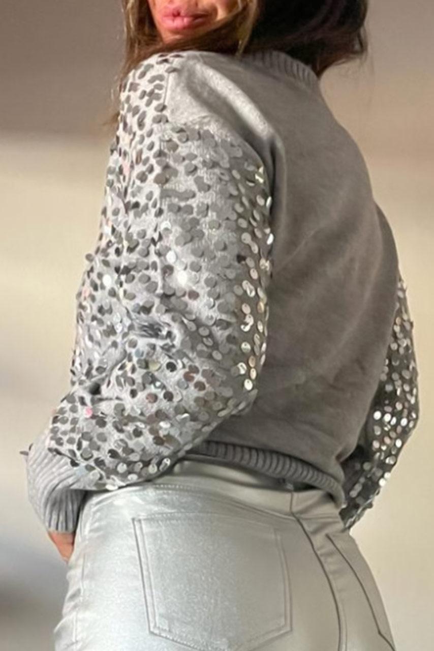 Μακρυμάνικο πουλόβερ με παγιέτες γκρι