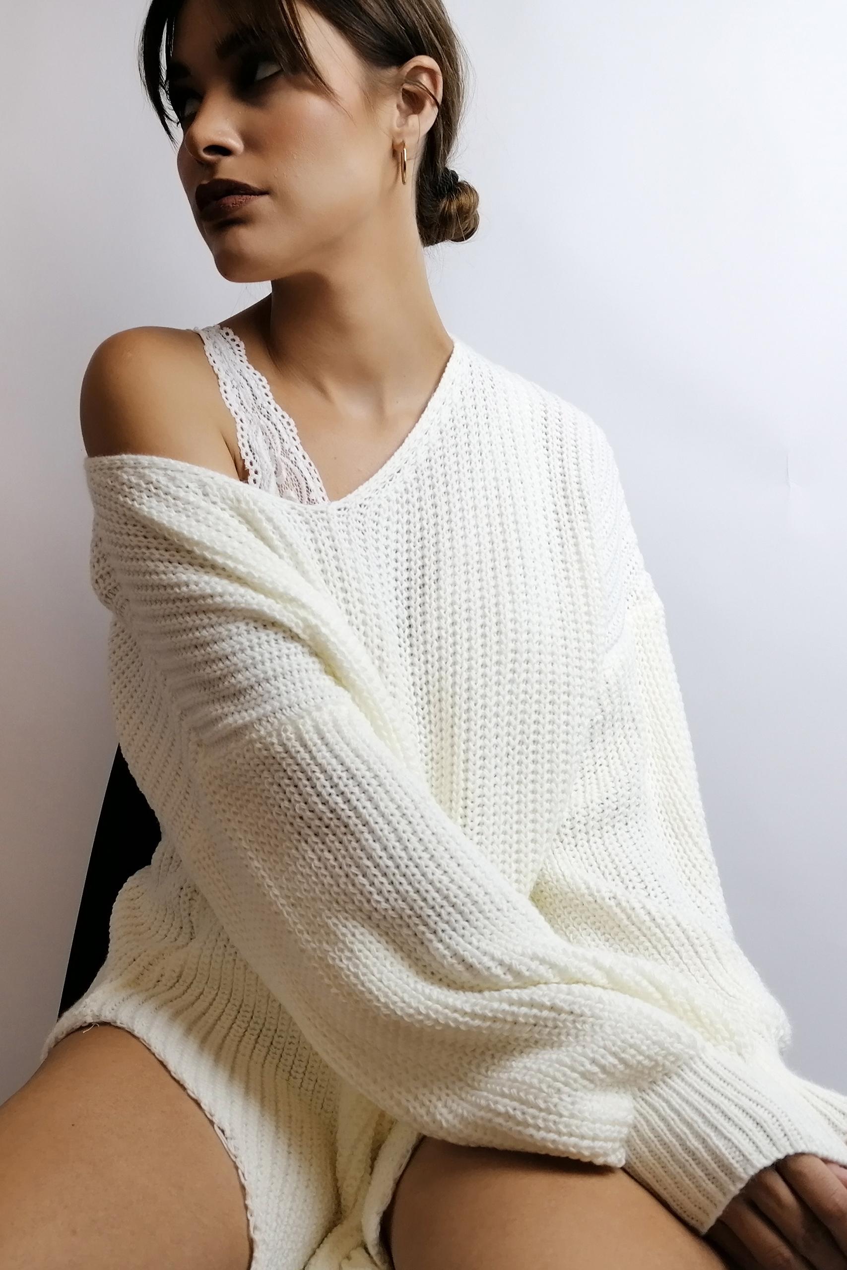 Boho oversized μακρυμάνικο πουλόβερ σε off white απόχρωση για όλες τις ώρες της ημέρας.  Συνδυάστε το με το Lace bralette σε δύο χρώματα για mix n match outfits.