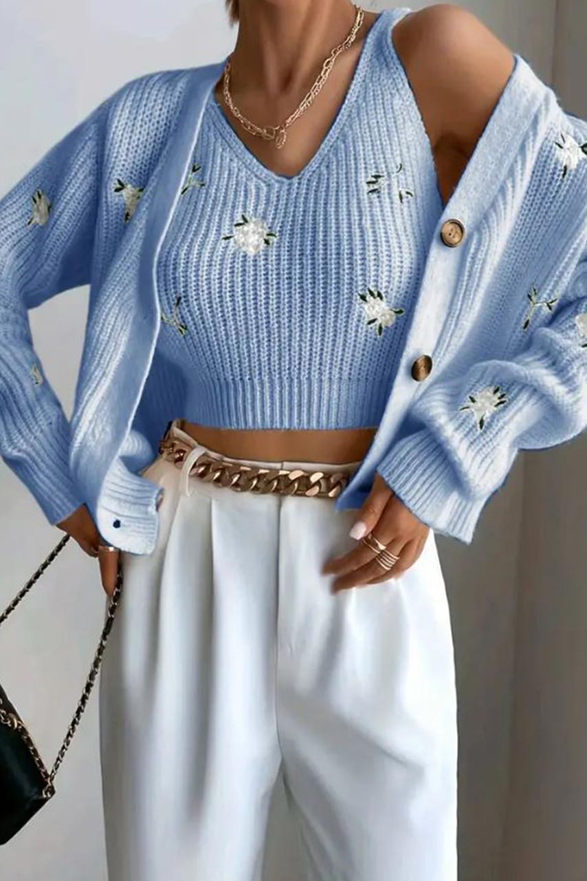 Σετ ζακετάκι με τοπ σε γαλάζιο χρώμα