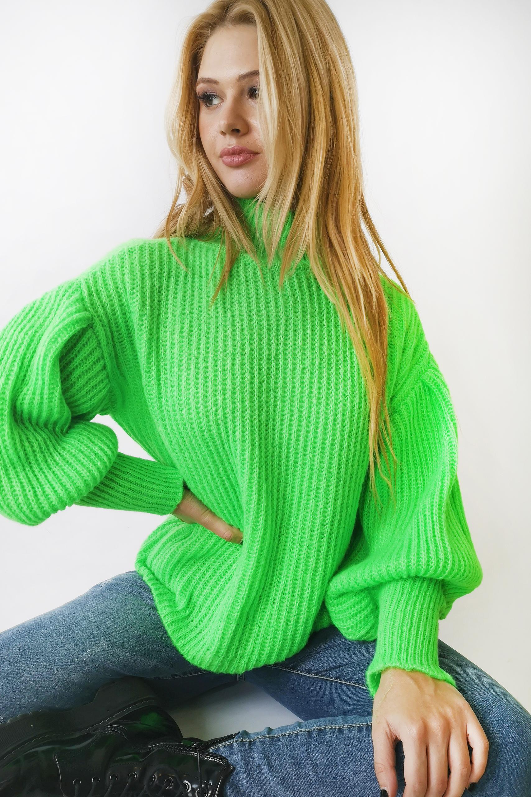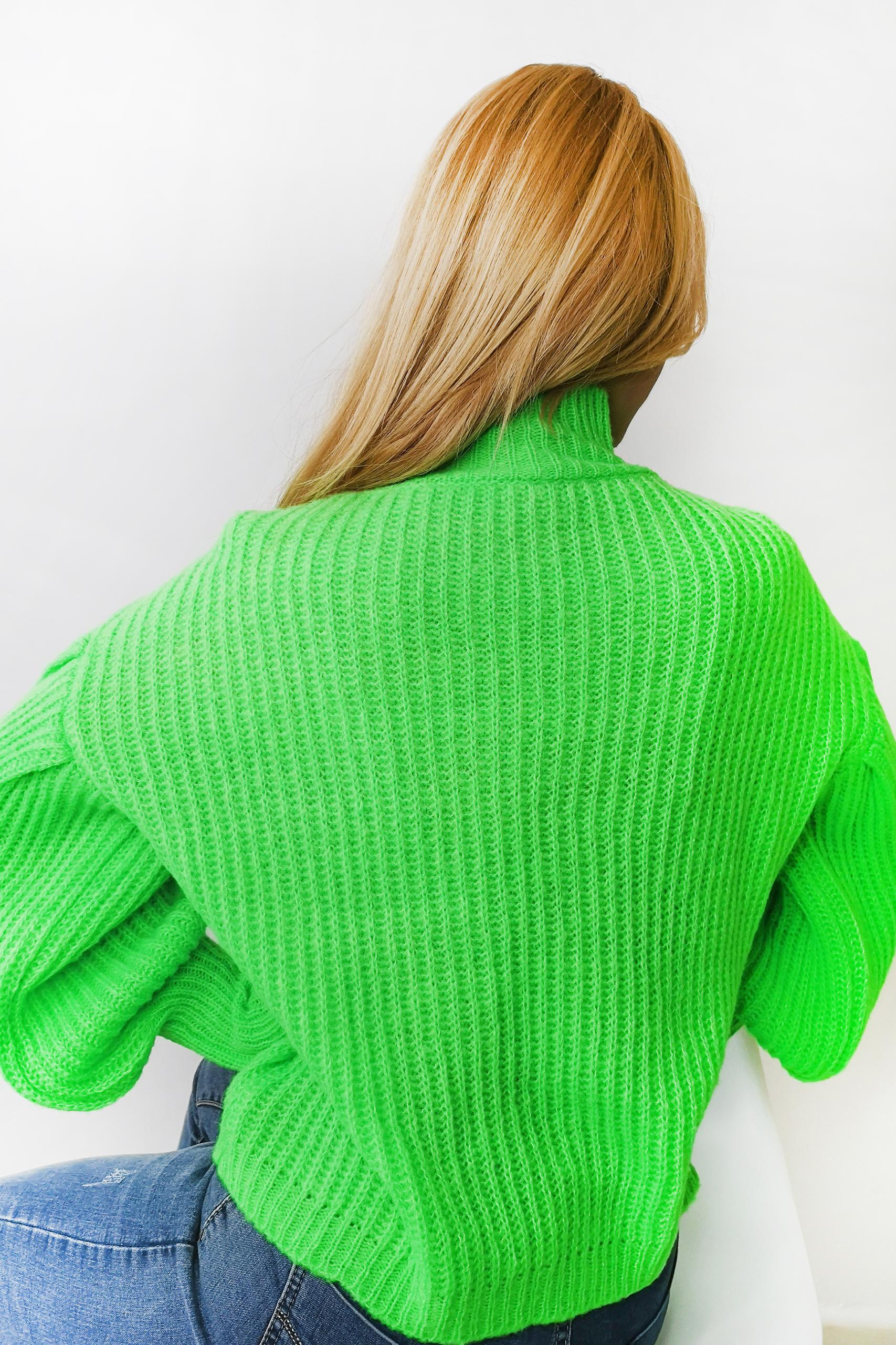 Solid knitted πουλόβερ ζιβάγκο σε μονόχρωμη neon έντονη πράσινη και κίτρινη απόχρωση.
