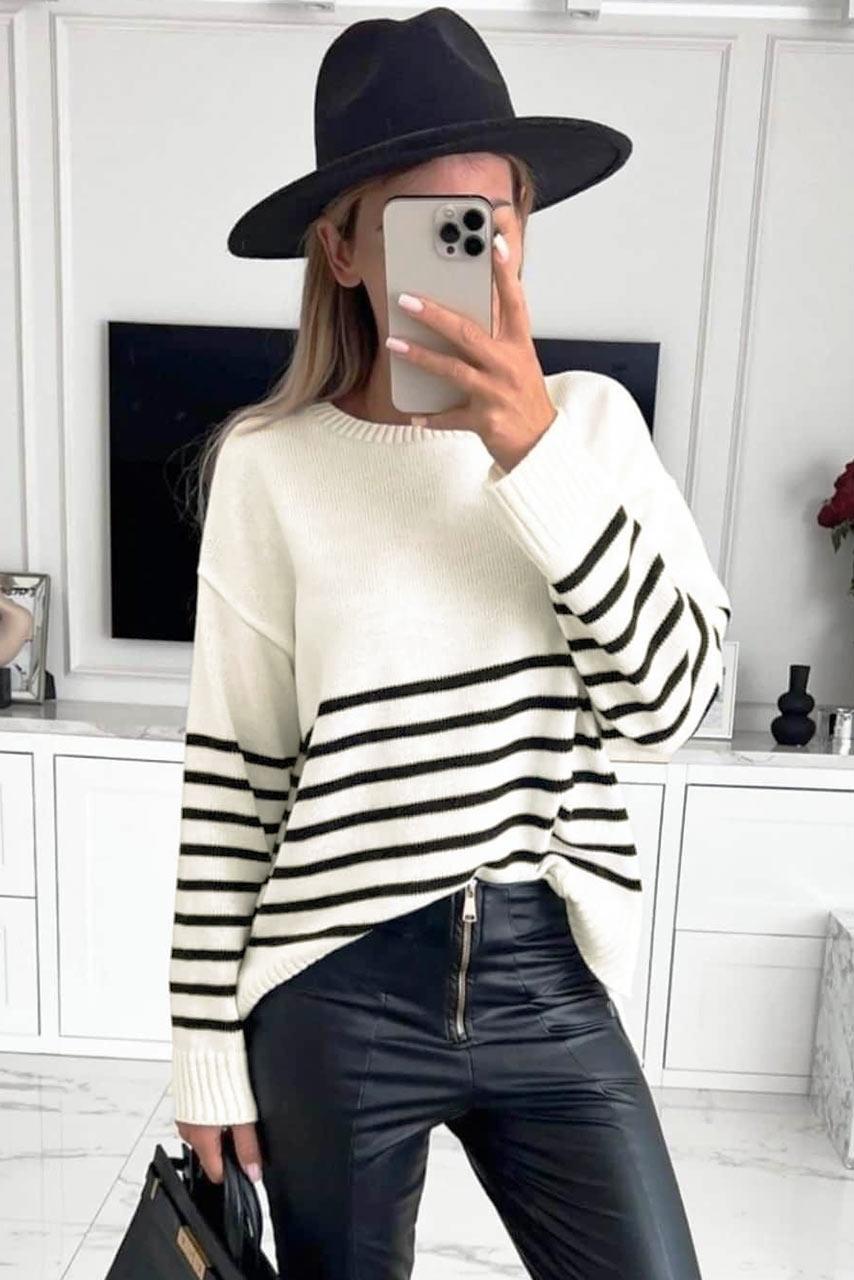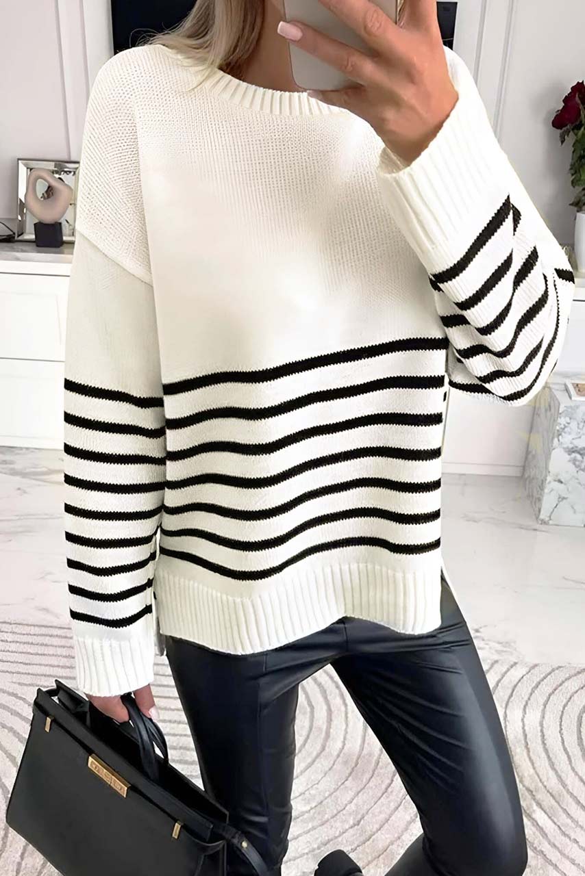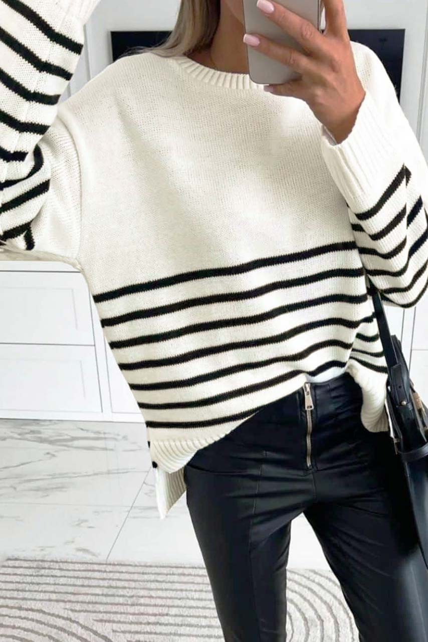 Casual ριγέ μακρυμάνικο πλεκτό για αμέτρητους συνδυασμούς. Έχει άνετη γραμμή είναι One Size το νουμεράκι του.