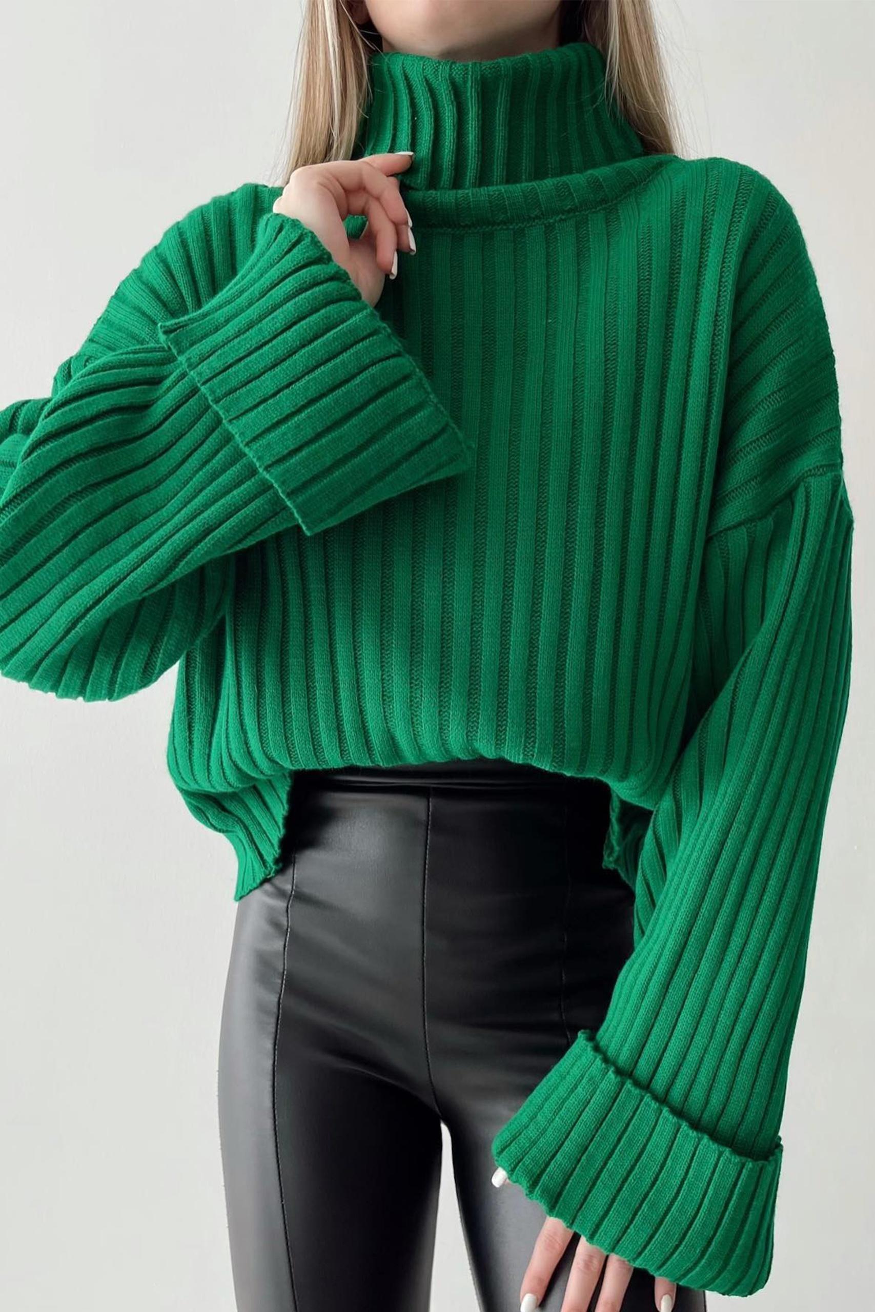 Turtleneck crop top πουλόβερ με μεγάλο ζιβάγκο και φαρδύ μανίκι σε τρεις αποχρώσεις.