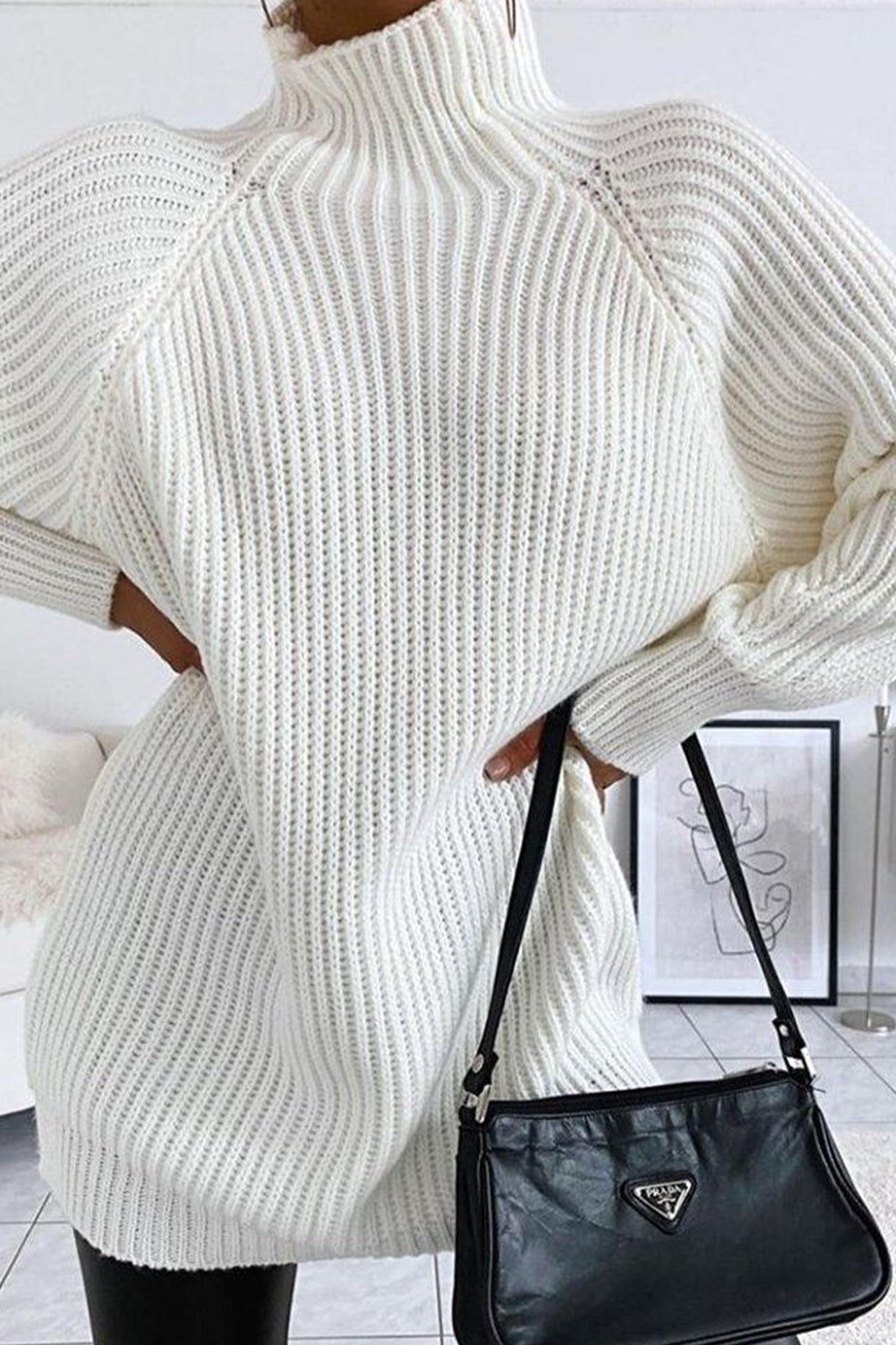 Turtleneck longline φαρδύ πουλόβερ σε λευκό.