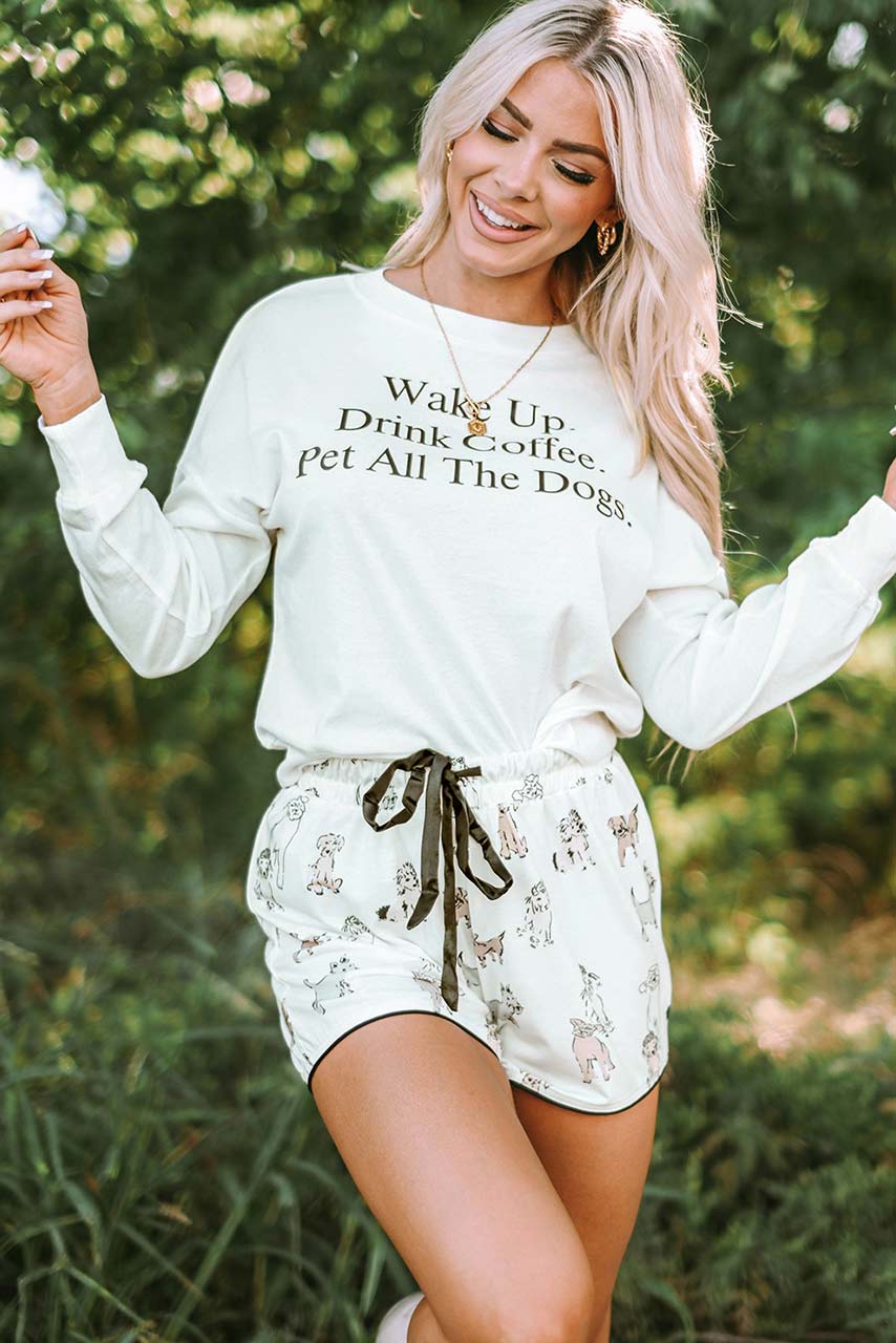 Cozy all day σετ πιτζάμες σε μπεζ αποχρώσεις με στάμπα message print on top και σορτσάκι με μοτίβα ζωγραφιάς.