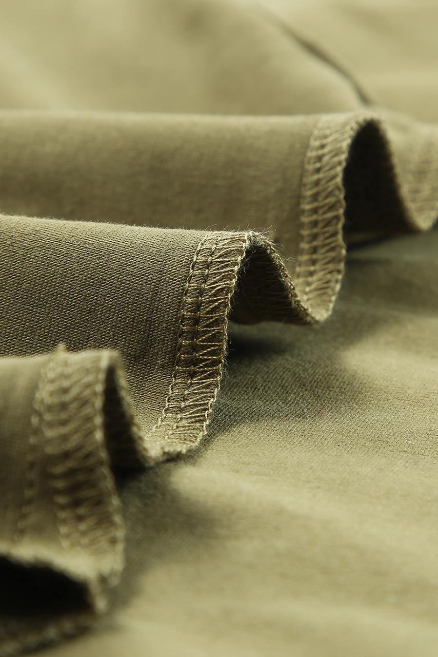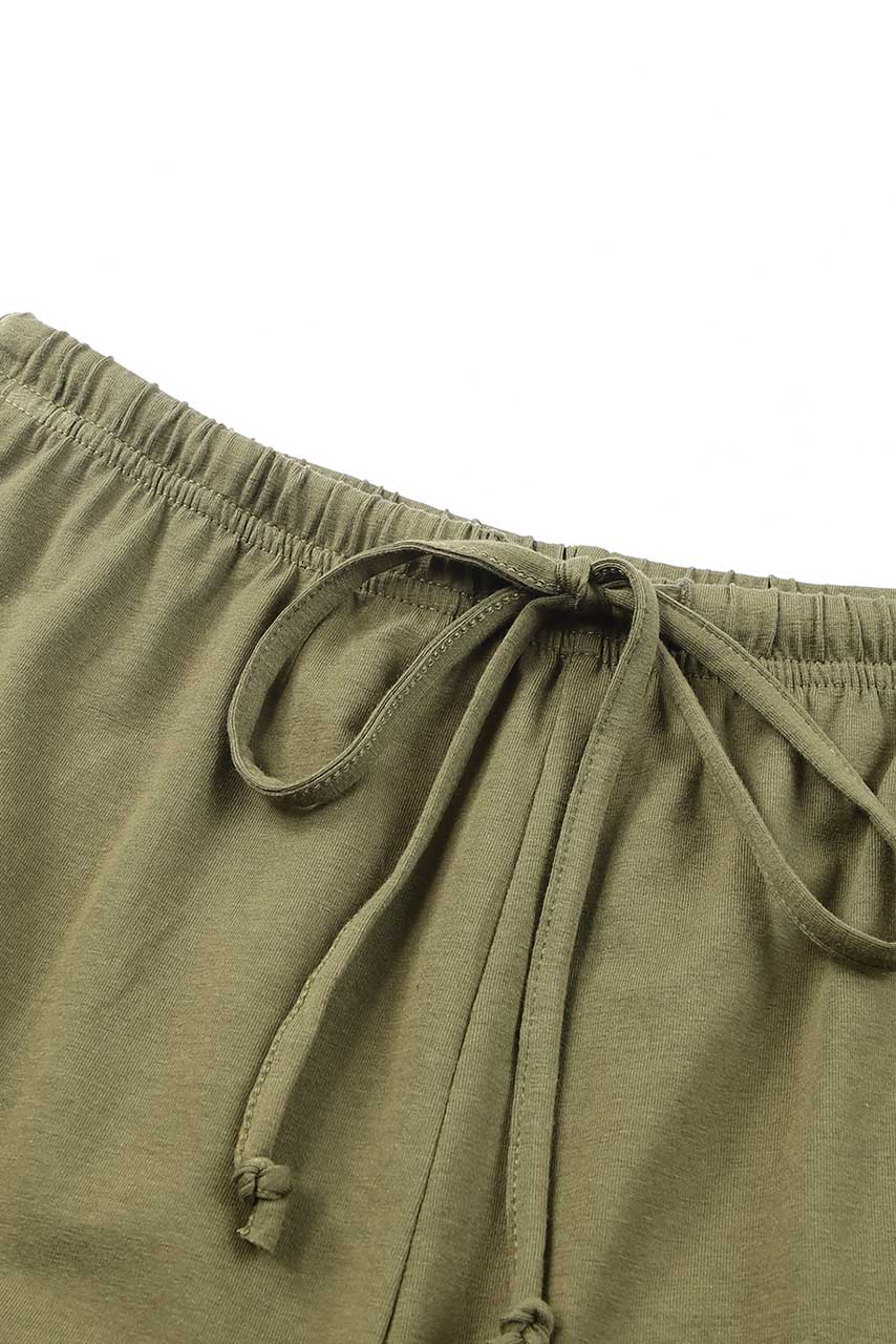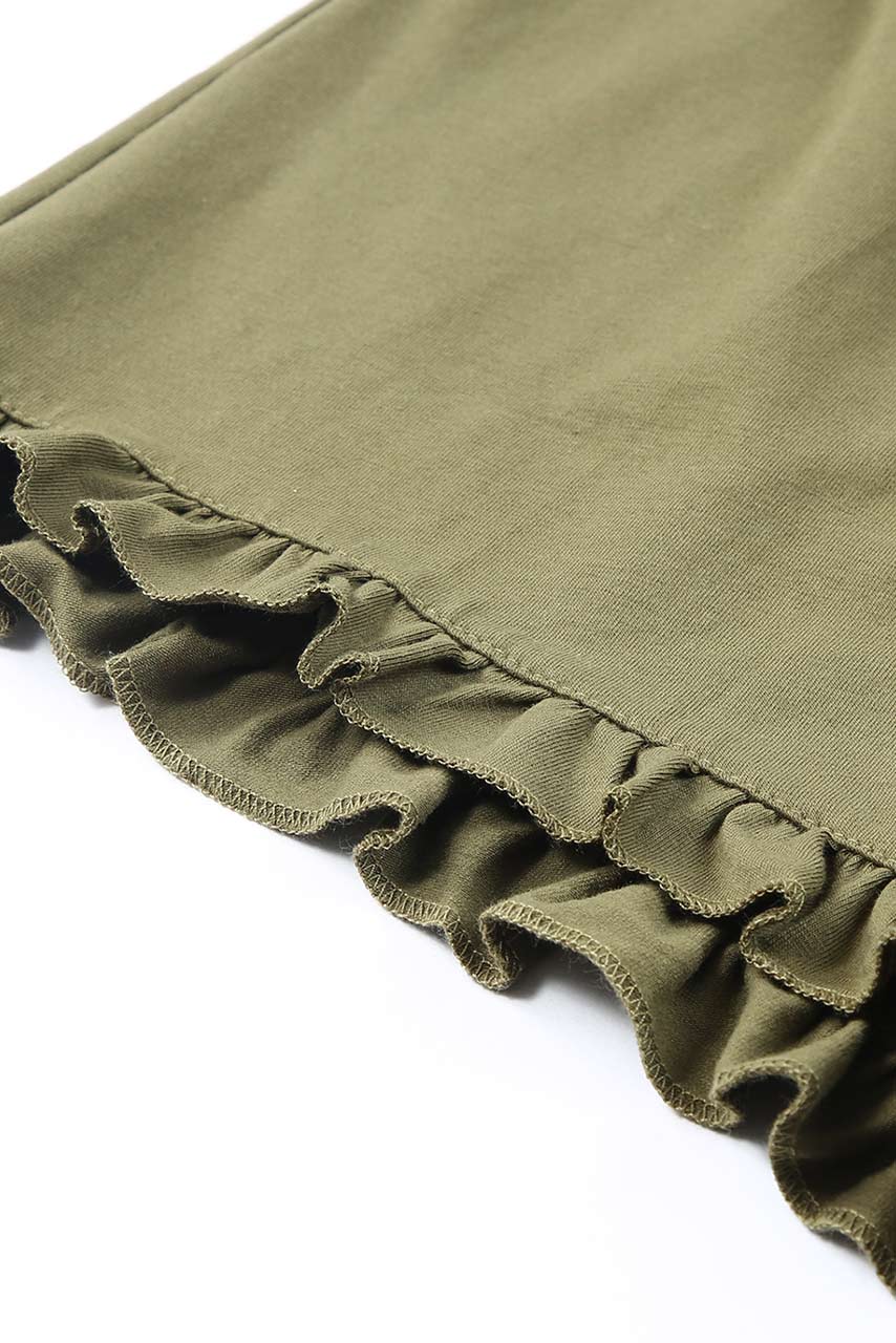 Χακί μονόχρωμο loungewear σετ πιτζάμας για cozy εμφανίσεις με αμάνικο crew neck τοπ και άνετο σορτς με όμορφα βολάν που προσθέτουν έναν ρομαντικό αέρα, στο total casual look του.