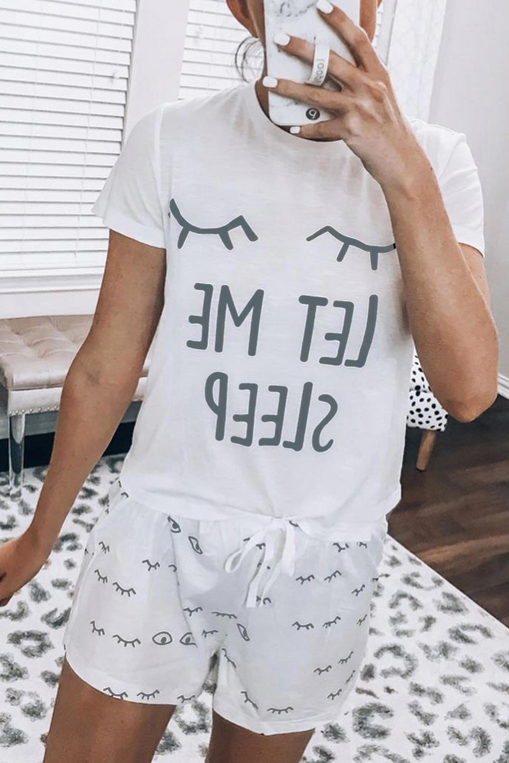 Σετ πιτζάμες με στάμπα σε λευκό χρώμα με μαύρες λεπτομέρειες.