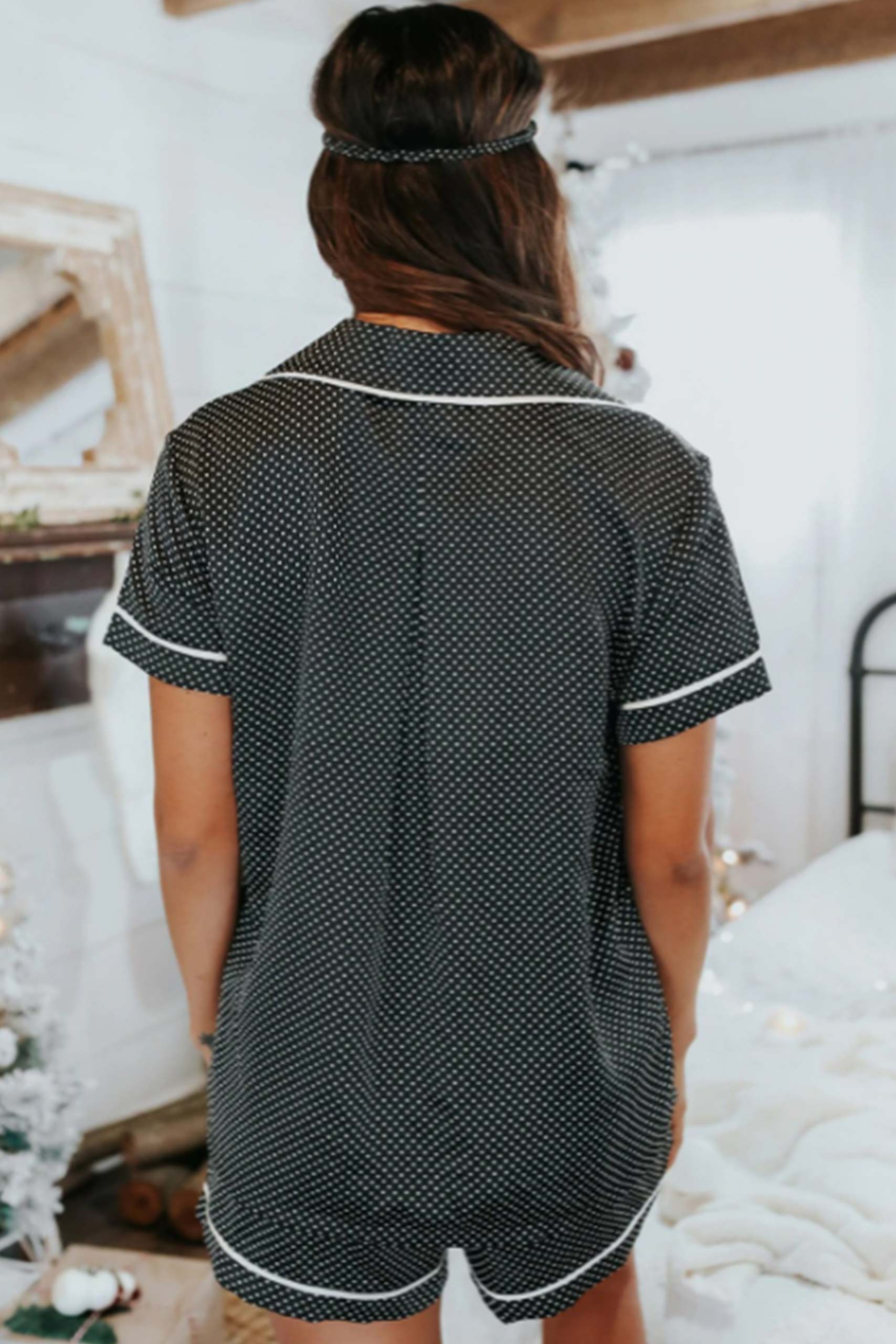 Polkadot pajamas σετ πουά πιτζάμες με λευκή ρίγα λεπτομέρεια, σε σατινέ υφή με κοντομάνικο τοπ και μίνι σορτς.