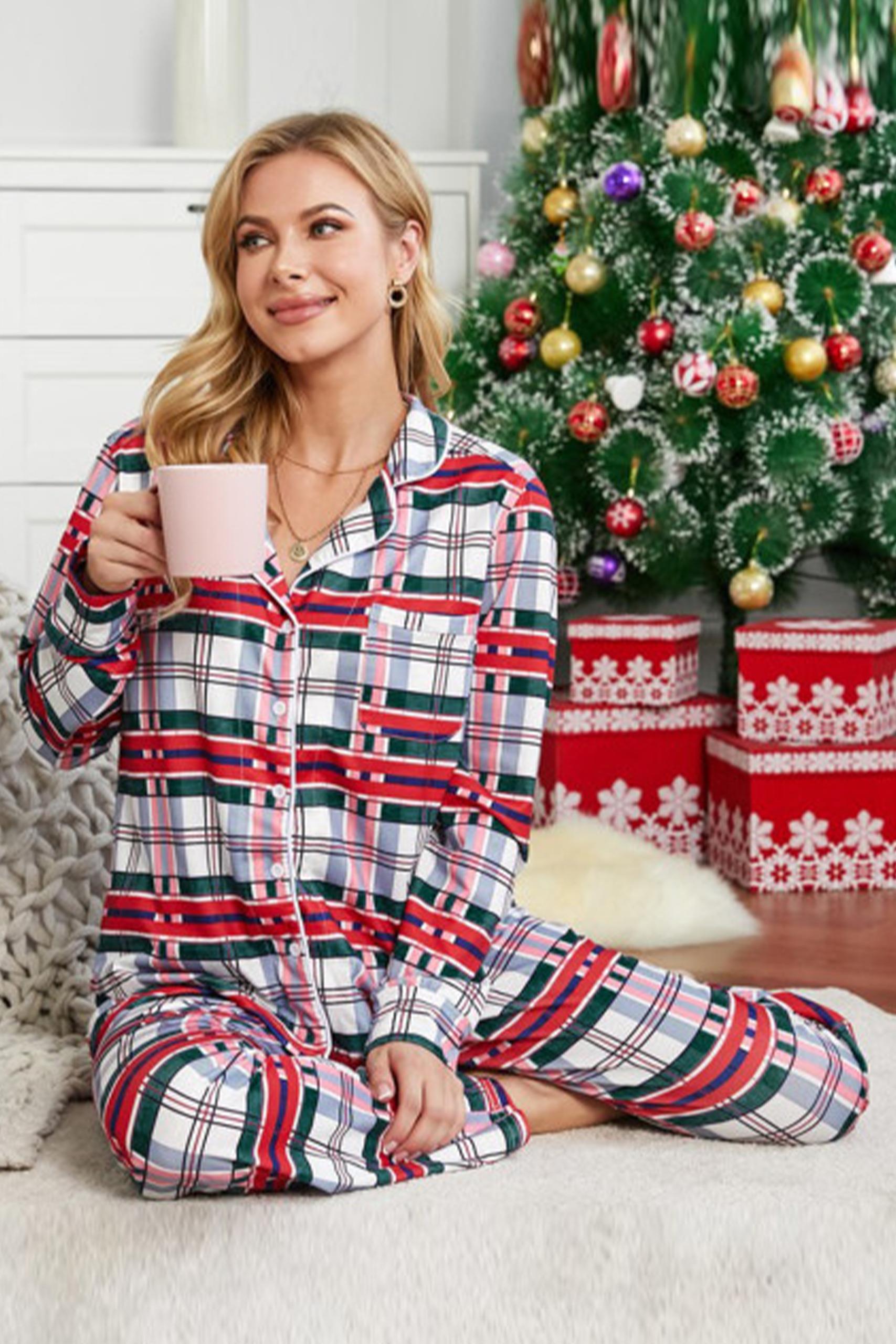Tartan plaid loungewear πολύχρωμο σετ σε έντονες αποχρώσεις με μεγάλα καρώ pattern και τσέπη μπροστά.