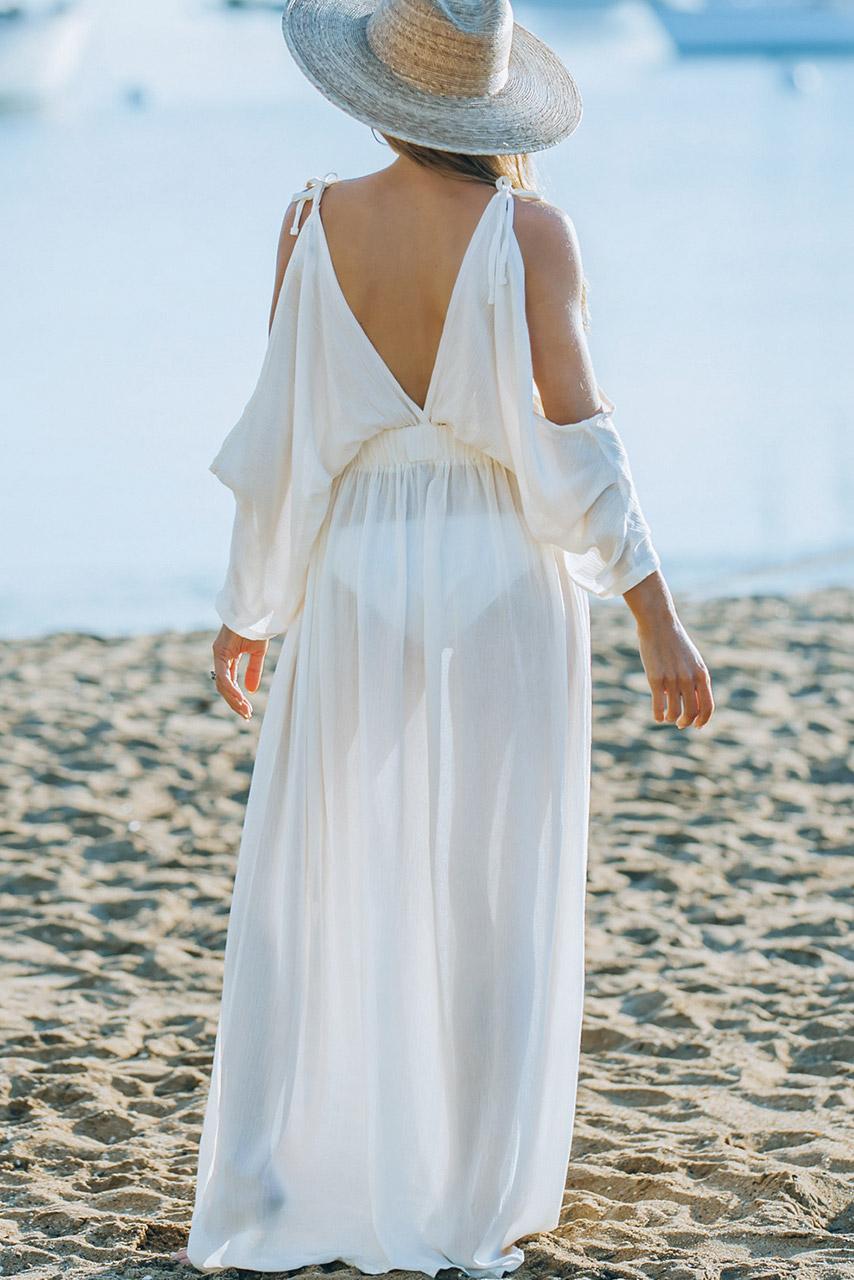 Mesh transparent maxi ημιδιάφανο φόρεμα παραλίας με μεγάλο V neck/back , cut outs και δέσιμο στους ώμους.