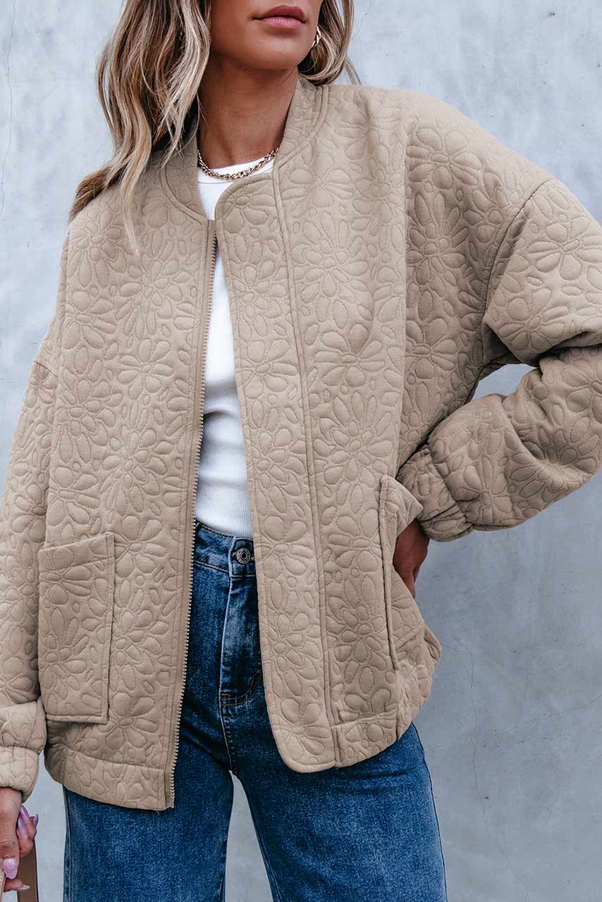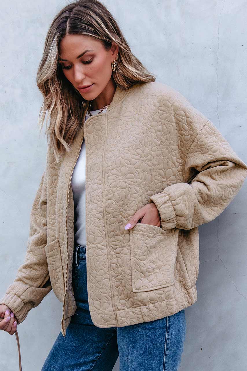 Μπέζ  ανάλαφρο μακρυμάνικο τζάκετ με floral  κεντημένο σχέδιο. Διαθέτει τσέπες και φόδρα και συνδυάζεται με όλα τα ρούχα.