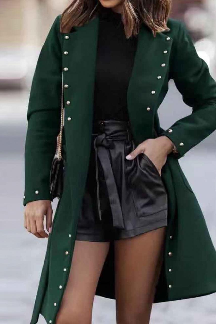 Rock glam longline παλτό με τρουκς σε κυπαρισσί χρώμα.