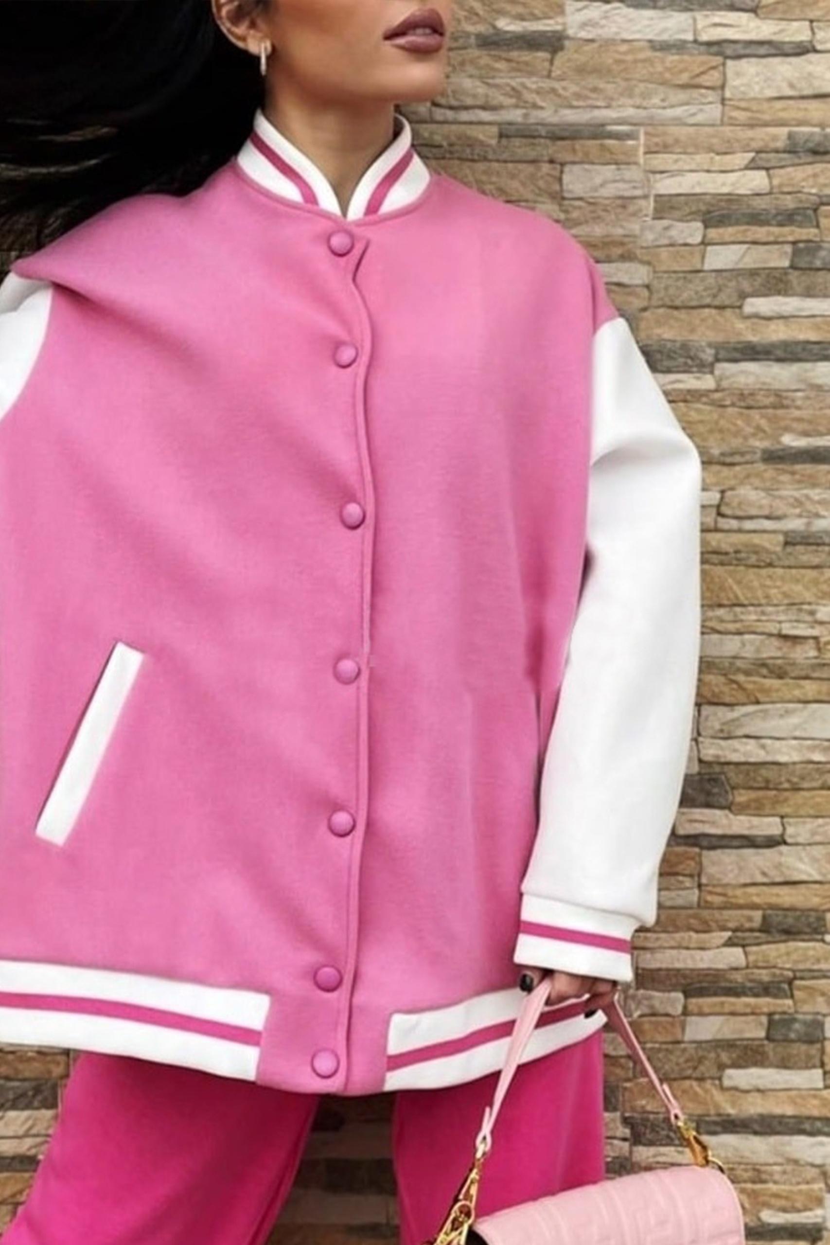 College bomber button linen μπουφάν κολλεγιακού τύπου σε τρεις δίχρωμες αποχρώσεις.