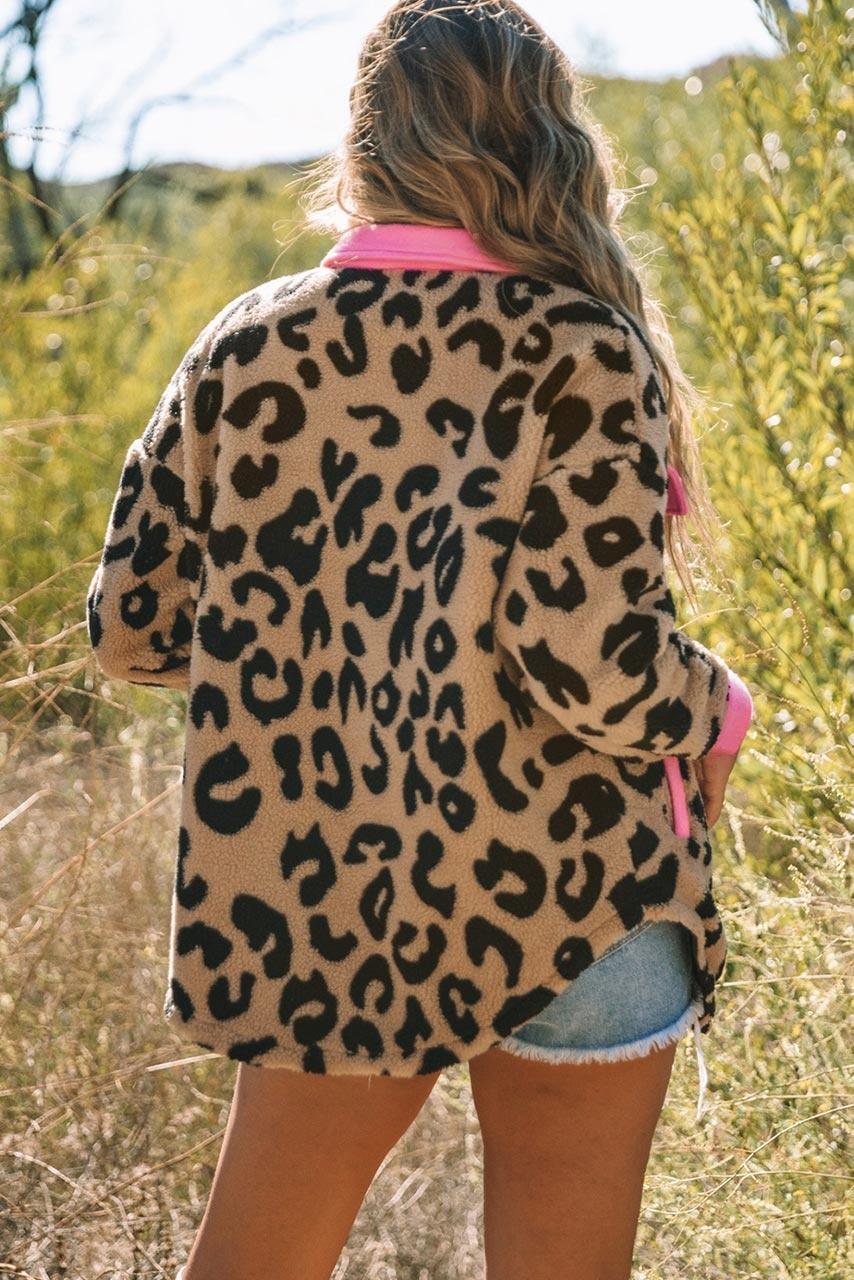Γούνινο τζάκετ λέοπαρ με ροζ λεπτομέρειες