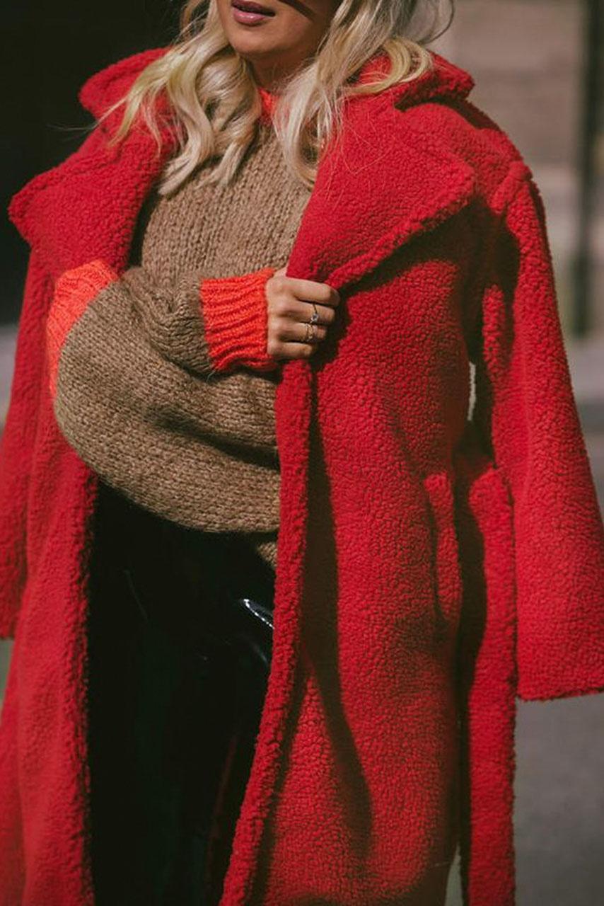 Μακρύ teddy πανωφόρι κόκκινο