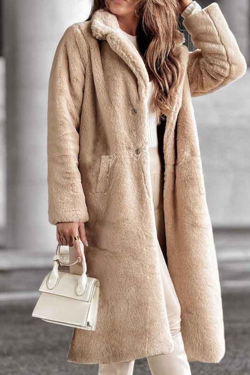 Γούνα μακριά με τσέπες μπεζ Γούνα μακριά με τσέπες μπεζ