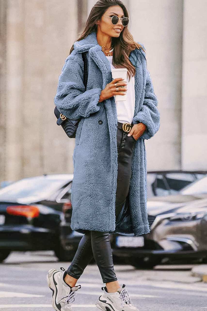 Oversized teddy παλτό eco fur sherpa υφής σε γαλάζιο χρώμα.