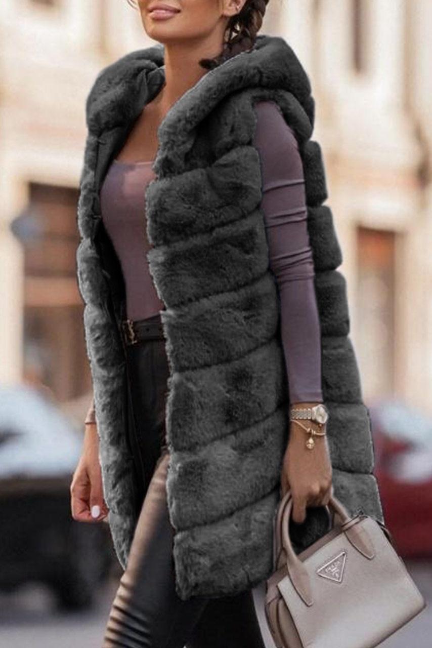 Αμάνικο γουνάκι με κουκούλα σε ανθρακί Αμάνικο γουνάκι με κουκούλα σε ανθρακί