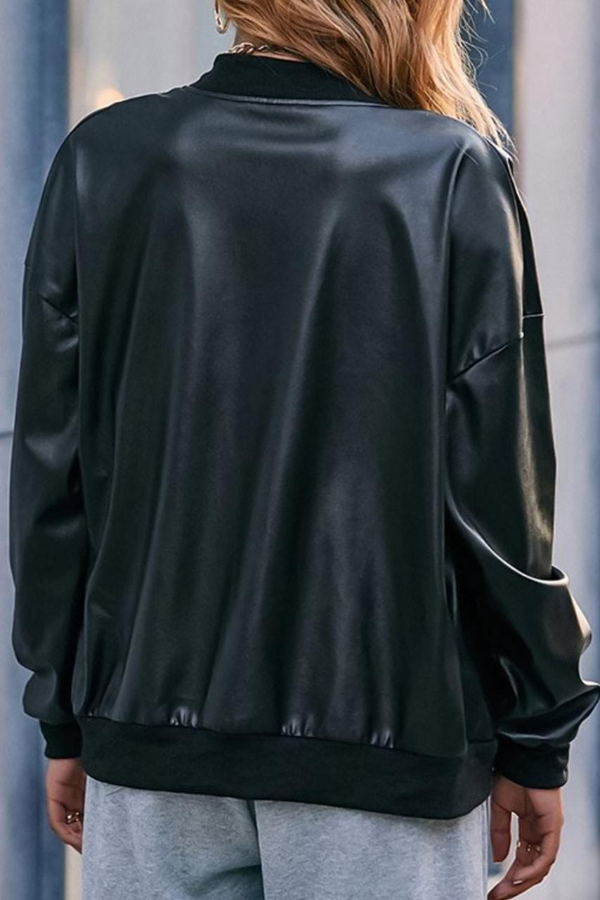 Άνετο δερμάτινο bomber jacket με φερμουάρ και ελαστικό ύφασμα στα τελειώματα. Ένα κομμάτι που θα απογείωση το casual street look σου και θα το συνδυάσεις με όλα τα ρούχα σου στην ντουλάπα.