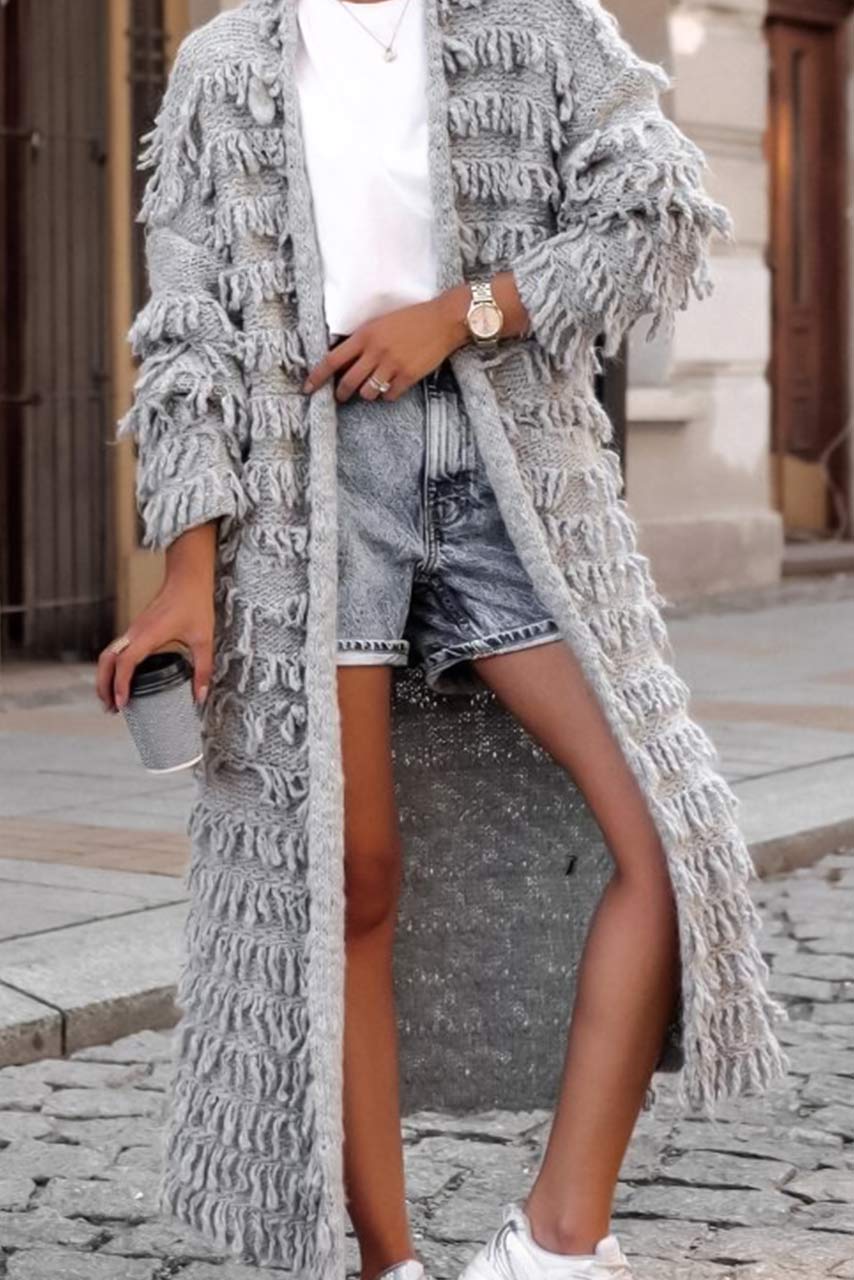 Μακριά ζακέτα με κρόσια
