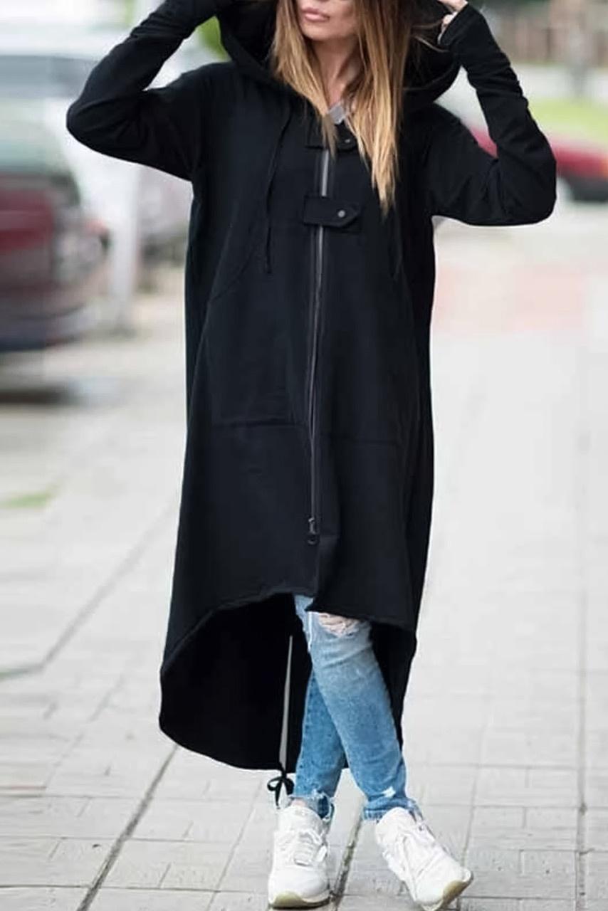 Casual athletic longline φούτερ μακρύ με κουκούλα σε μαύρο χρώμα.